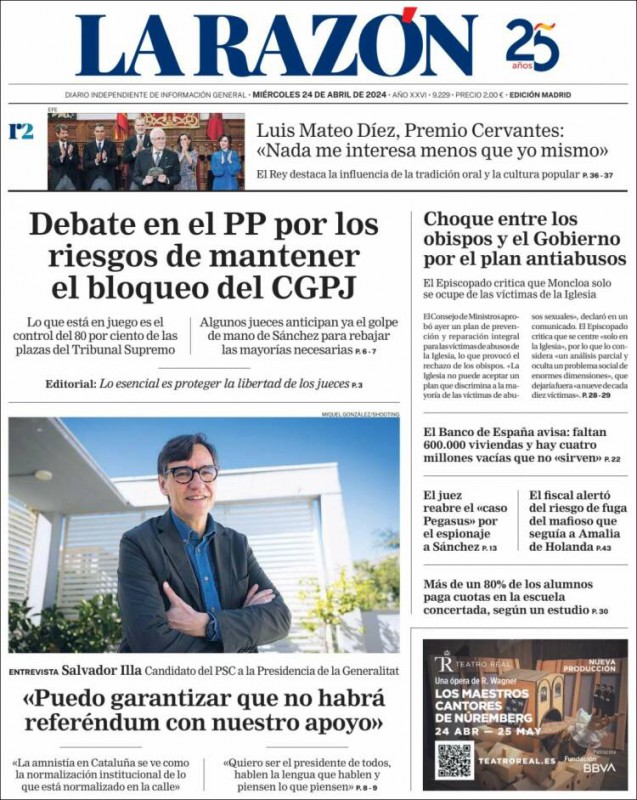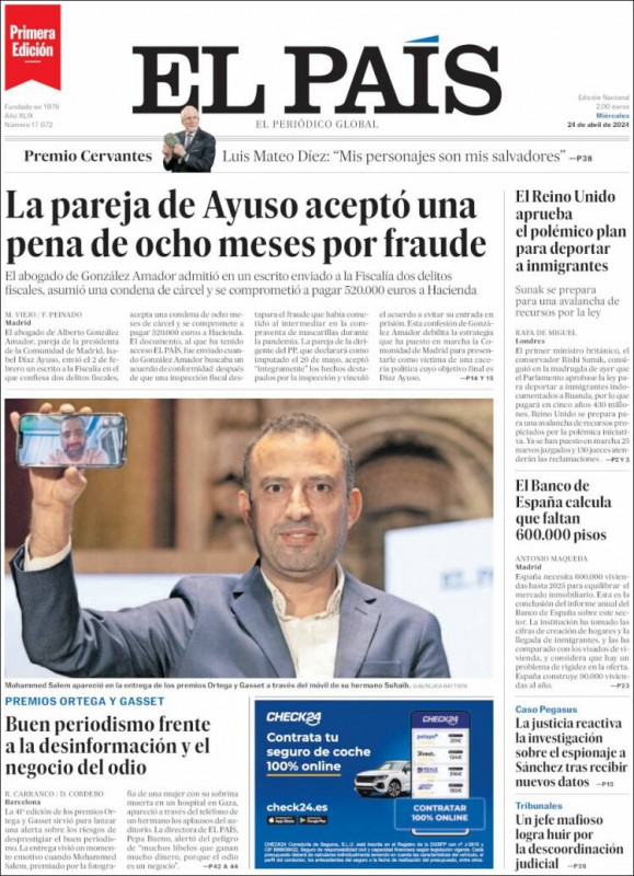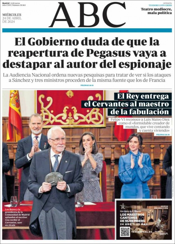 Las portadas de los periódicos de este miércoles, 24 de abril