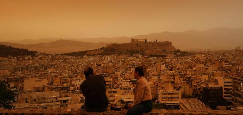 El cielo del sur de Grecia, incluida la capital Atenas, se han teñido de naranja debido a nubes de polvo del desierto del Sáhara, en uno de los peores episodios de este tipo desde 2018.