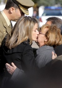 Los Príncipes de Asturias han llegado al cuartel general de la Brigada de Infantería Ligera BRILAT "Galicia VII", situado en Figueirido (Pontevedra), donde han transmitido un emotivo saludo a las viudas de los dos militares fallecidos en Afganistán, Rubén Alonso Ríos y Andrés Suárez García.