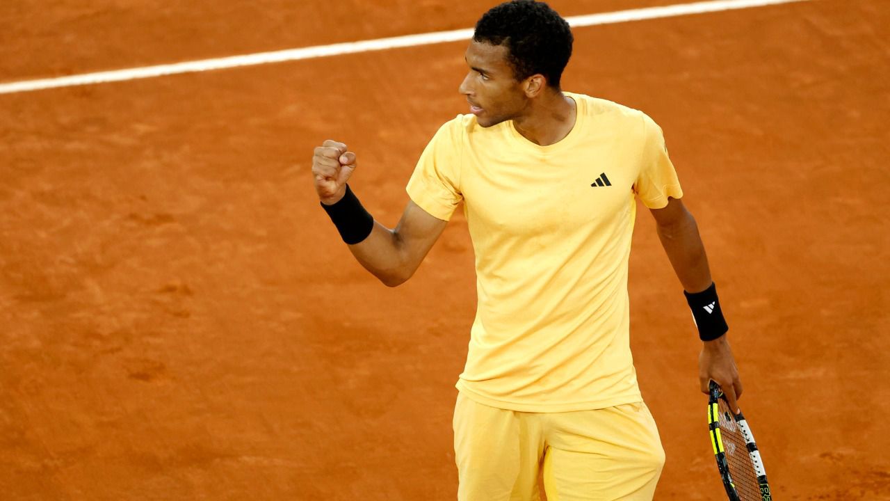 El séptimo cabeza de serie en este Madrid Open, en su 25ª final, pudo frenar el empuje de su contrincante que igualó un 40-0, pero no supo contrarrestar los primeros en el 'deuce'. Aliassime, en un turno irregular con saques directos a la 'T' y dos dobles faltas, no dio opción en su servicio.