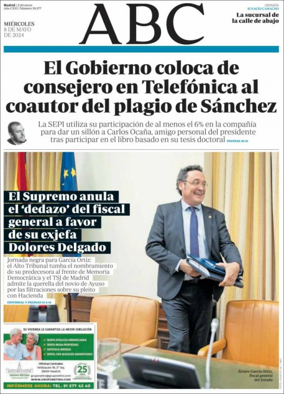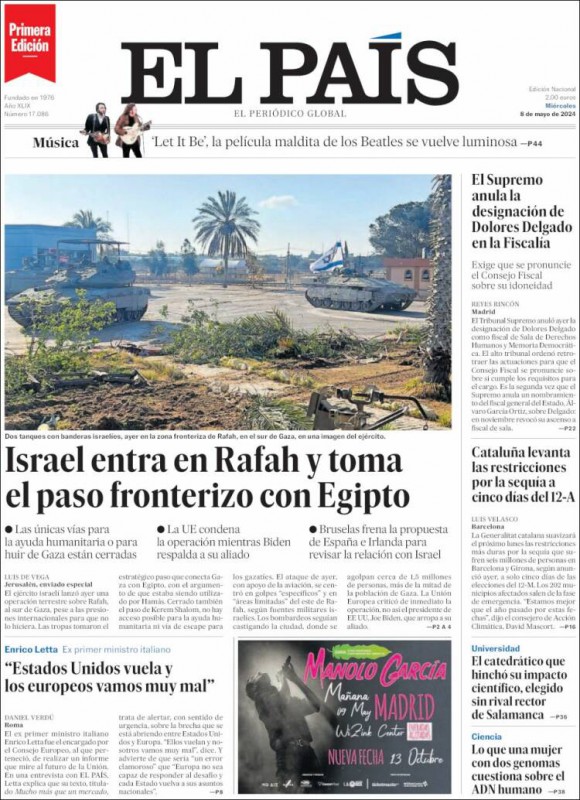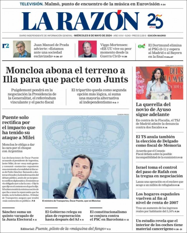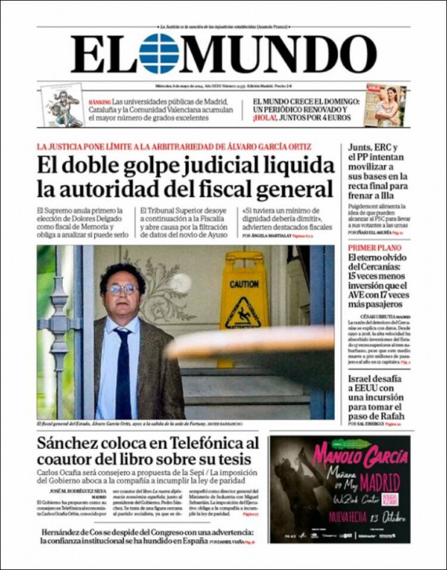 Las portadas de los periódicos de este miércoles, 8 de mayo