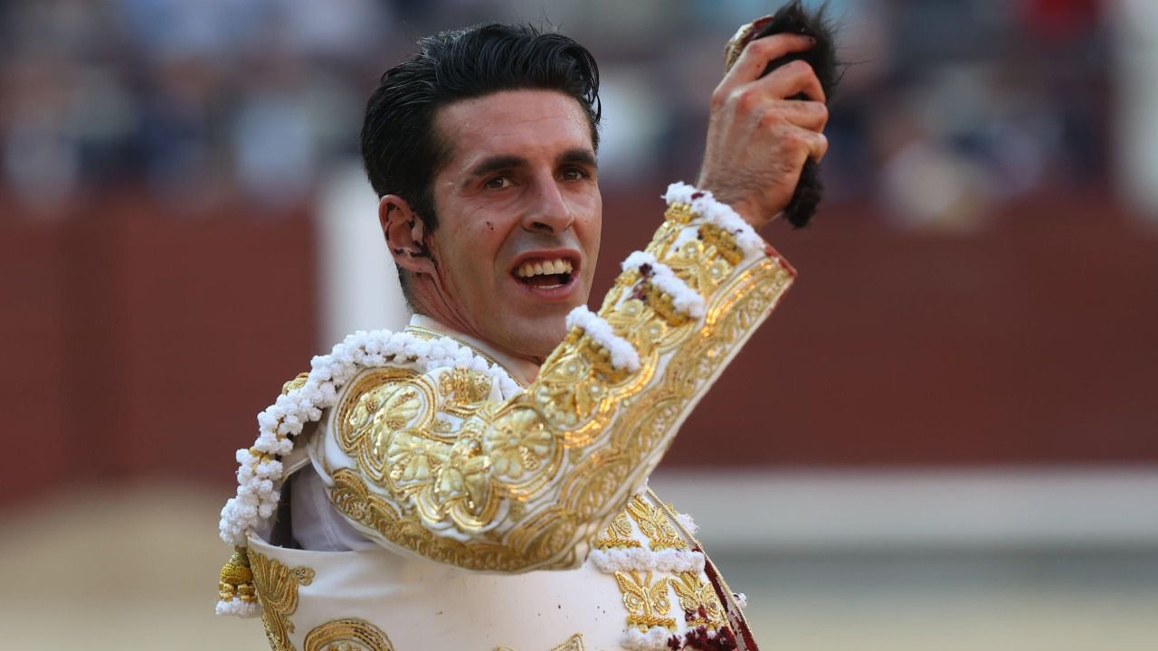 El diestro Alejandro Talavante corta una oreja durante el festejo de la Feria de San Isidro celebrado este miércoles. (Foto: EFE)