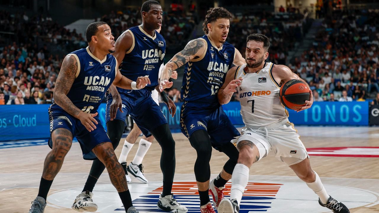 El triplete español o la primera Liga de su historia. Estos eran los dos objetivos por los que pugnan Real Madrid y UCAM Murcia. El equipo blanco, ganador de sus cuatro duelos en casa en estos playoffs, se enfrentaba a la sorpresa que llegó a su primera final de Liga Endesa ganando todos sus encuentros como visitante al Valencia y al Unicaja.