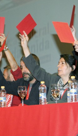 El debate del primer documento (la llamada "Declaración de Rivas Vaciamadrid", sobre la crisis económica mundial) se llevó toda la mañana, y entre la autocrítica y los comentarios económicos se pudieron escuchar mensajes que nada tenían que ver con el texto y que remarcaban el carácter republicano de la formación. "Estamos aquí no para condenar los comentarios homófobos, retrógrados y antediluvianos de la Familia Borbón, sino para decir que vale más la palabra de una Pasionaria que los libros de mil reinas", se arrancó Javier Madrazo.