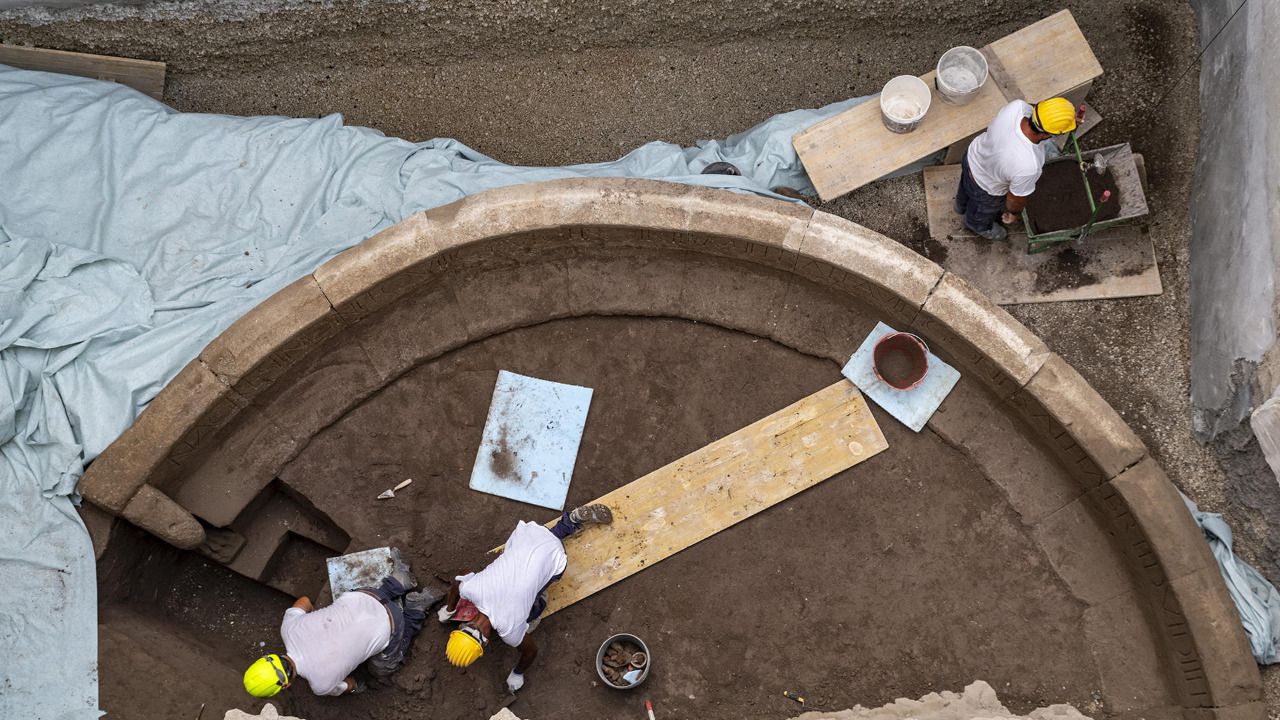 La tumba fue encontrada durante las obras de construcción de una cavidad funcional para recuperar la humedad de las salas subterráneas del edificio San Paolino, nueva sede de la biblioteca del Parque Arqueológico de Pompeya.
