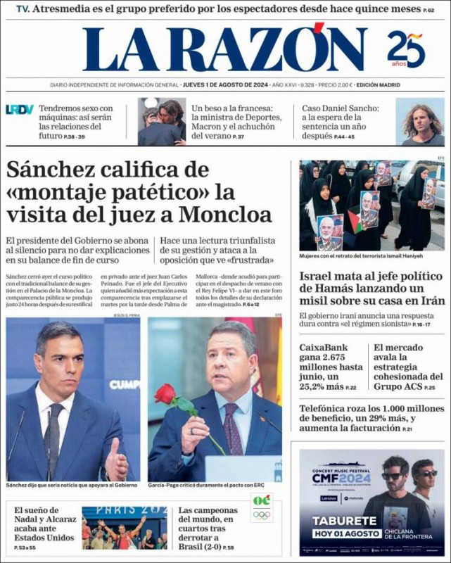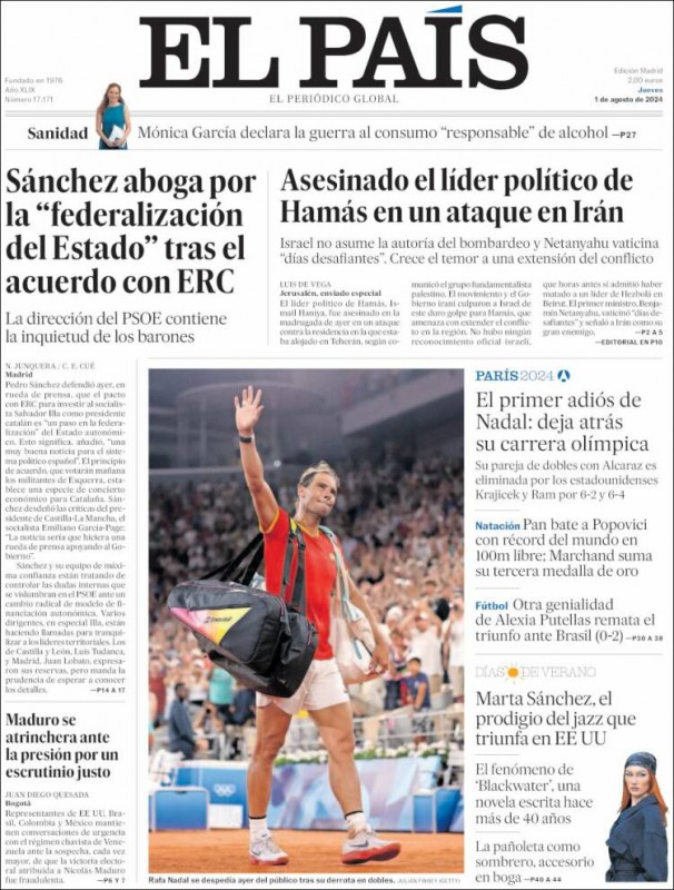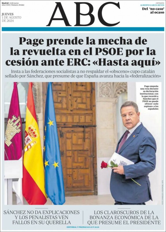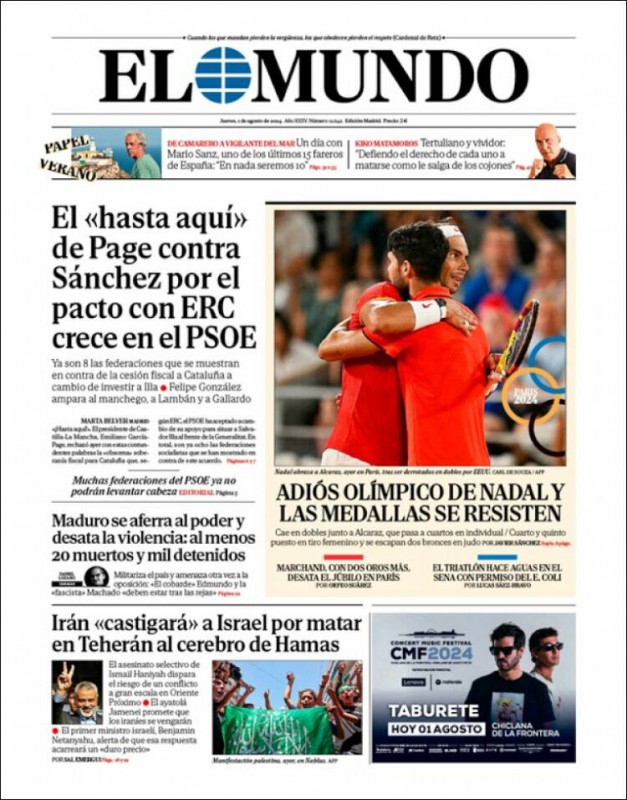 Las portadas de los periódicos de este jueves, 1 de agosto