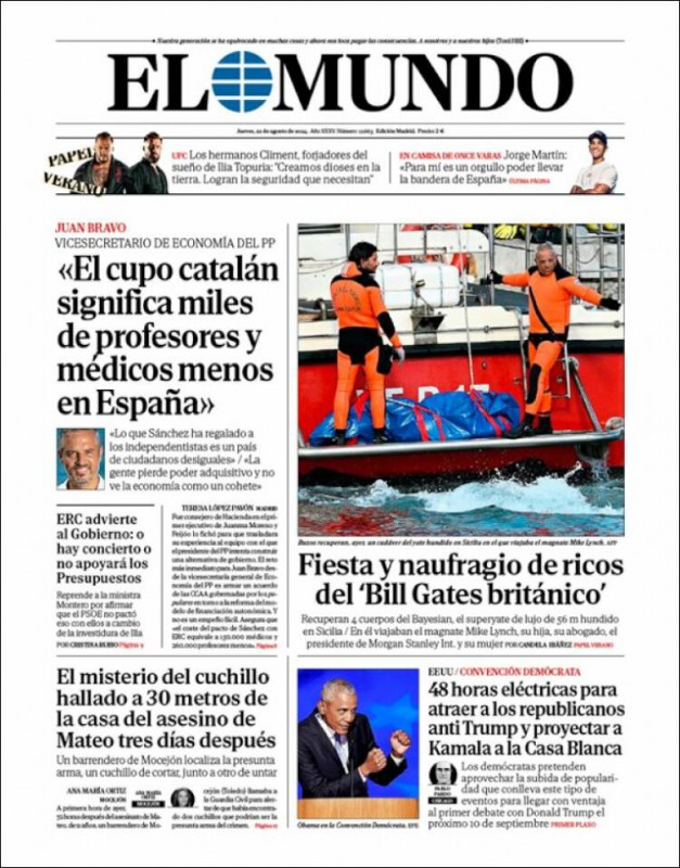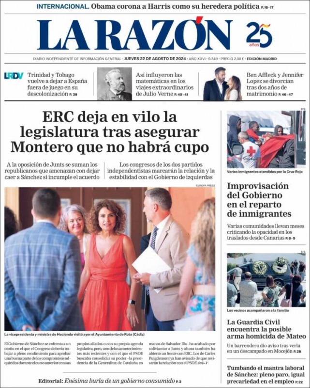 Las portadas de los periódicos de este jueves, 22 de agosto