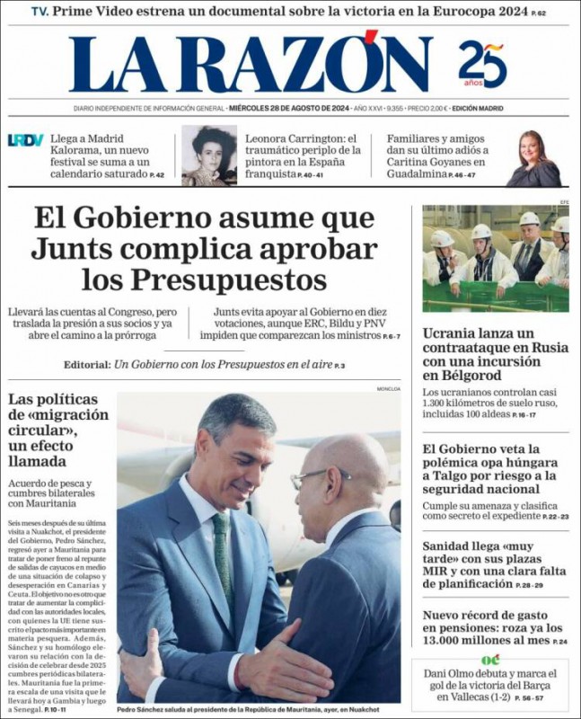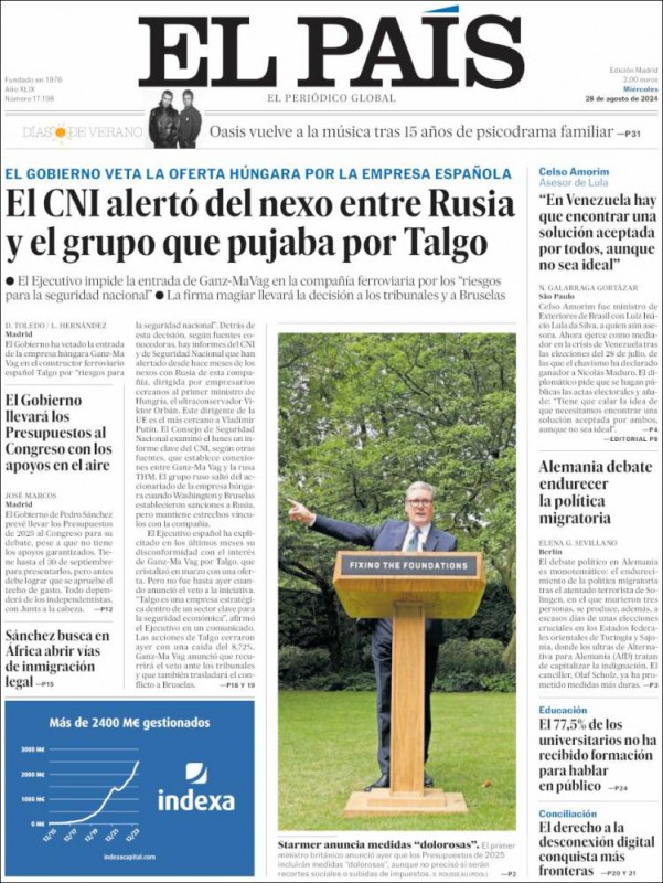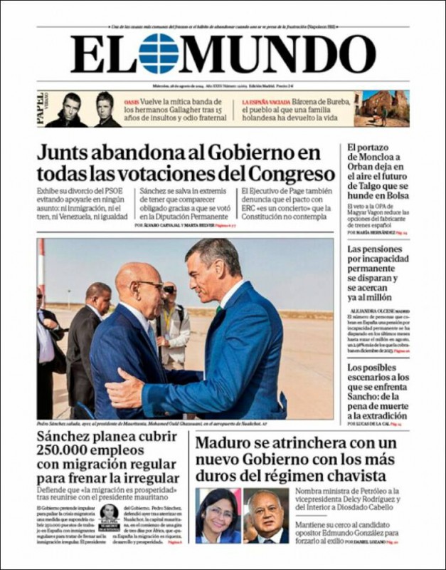 Las portadas de los periódicos de este miércoles, 28 de agosto