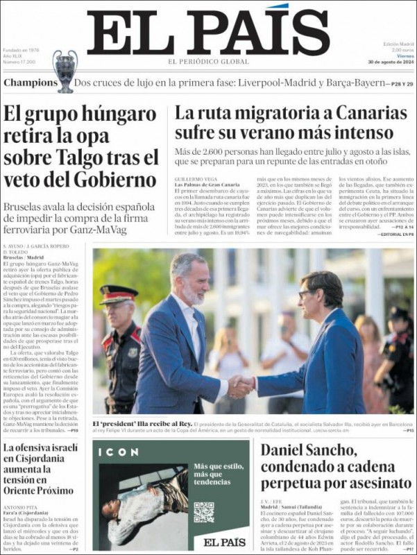 Las portadas de los periódicos de este viernes, 30 de agosto