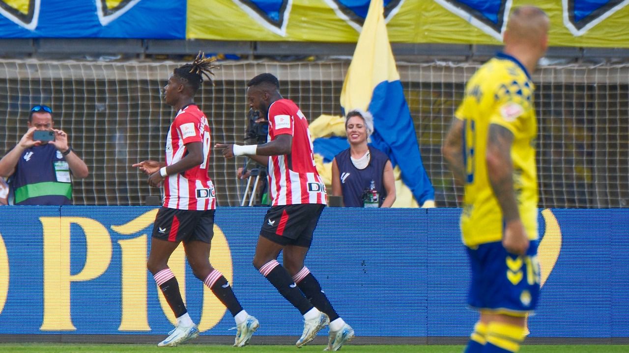 El Athletic Club venció este domingo por 2-3 a la UD Las Palmas en un partido en el que el equipo bilbaíno siempre fue por delante en el marcador, con dos goles de ventaja al descanso y un futbolista menos desde el minuto 56 al ser expulsado Mikel Jauregizar, en una gran tarde de los hermanos Williams, con el primer tanto liguero de Nico y tres asistencias de Iñaki.