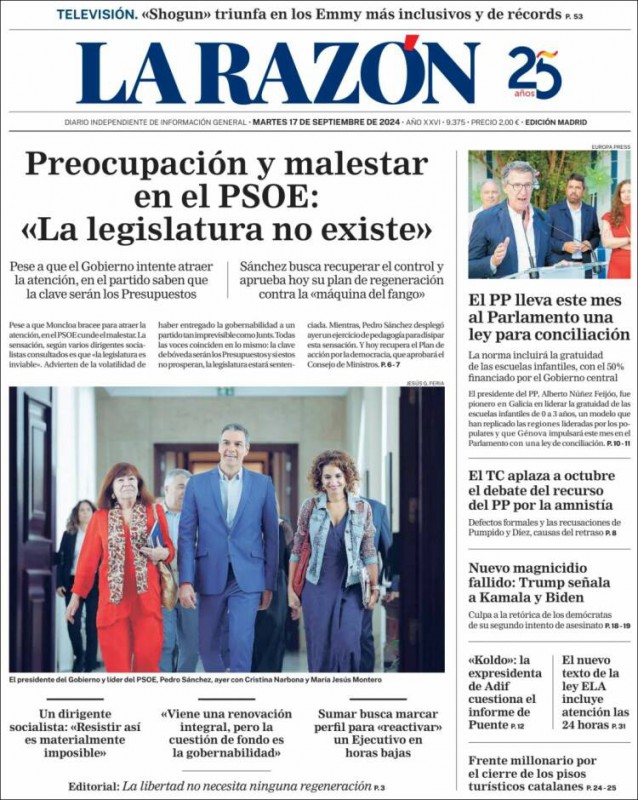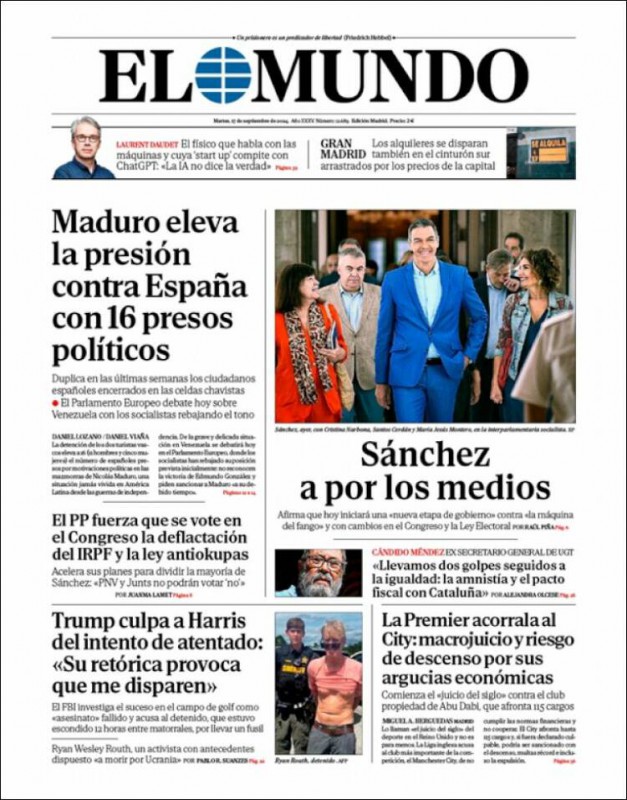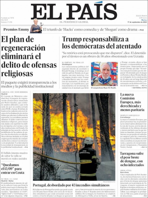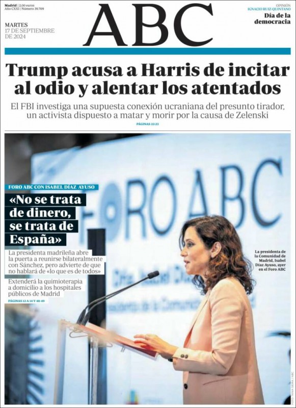 Las portadas de los periódicos de este martes, 17 de septiembre