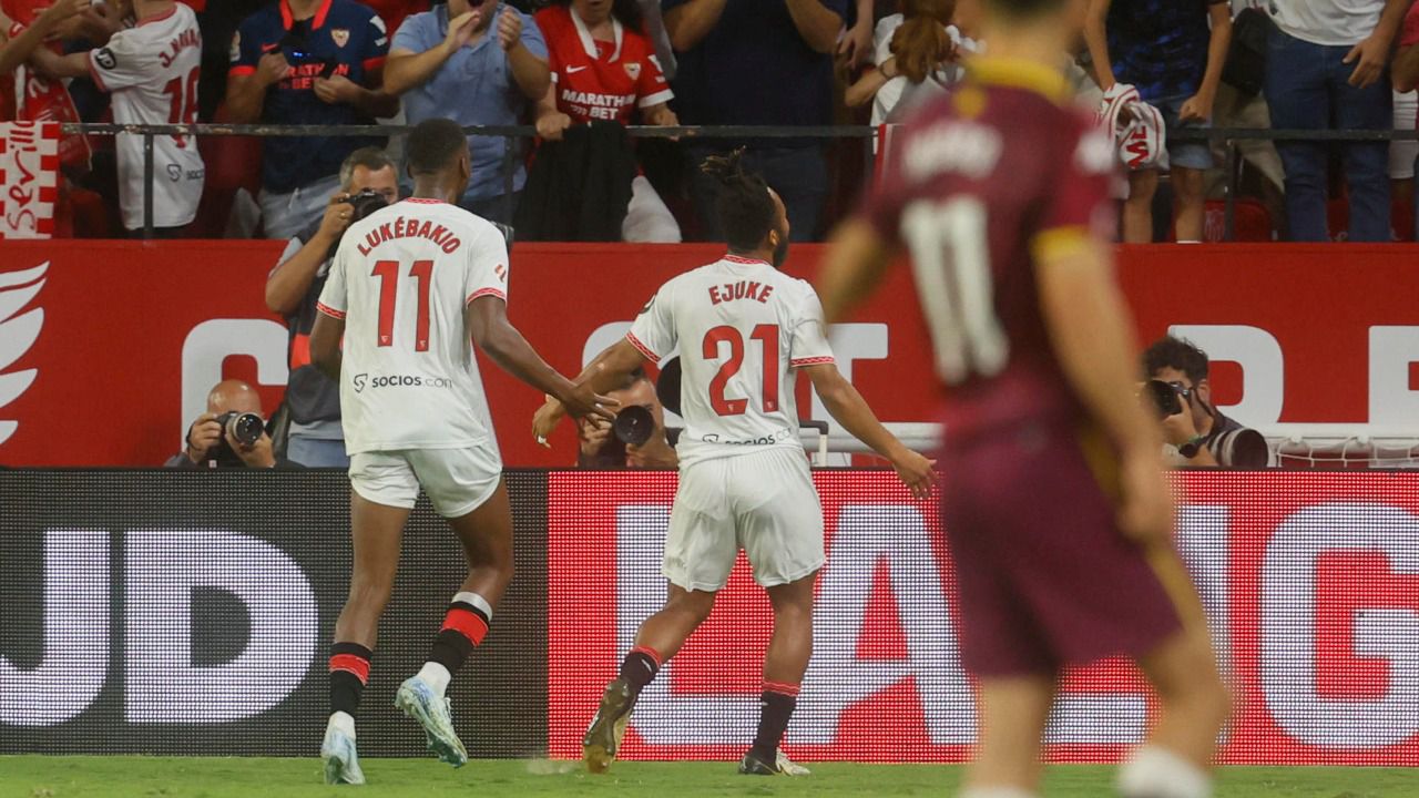 2 - Sevilla: Nyland; Carmona, Badé, Marcao, Barco (Montiel, m.91); Saúl (Agoumé, m.53), Gudelj, Peque (Kike Salas, m.91); Jesús Navas (Ejuke, m.62), Iheanacho (Suso, m.62) y Lukébakio.