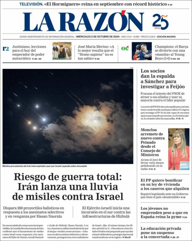 Las portadas de los periódicos de este miércoles, 2 de octubre