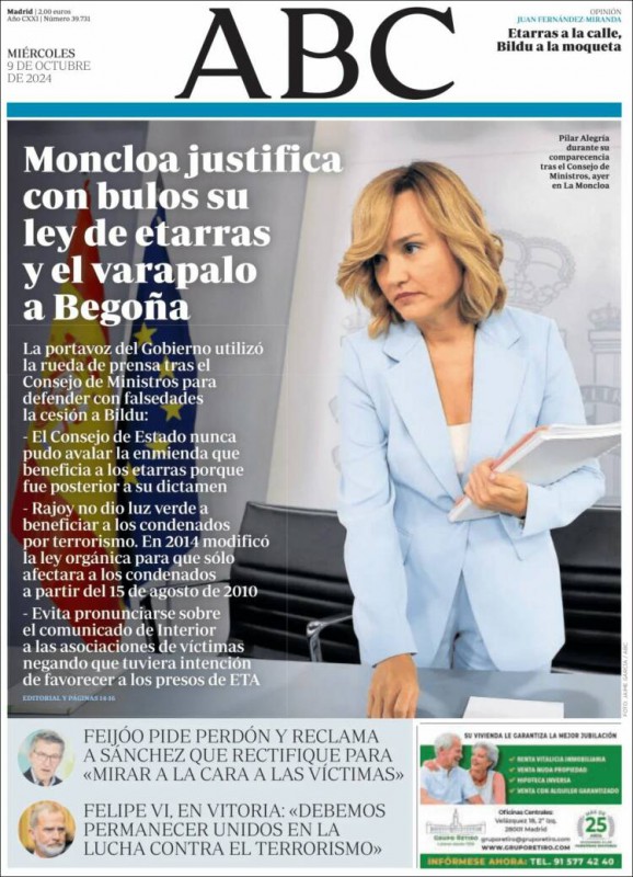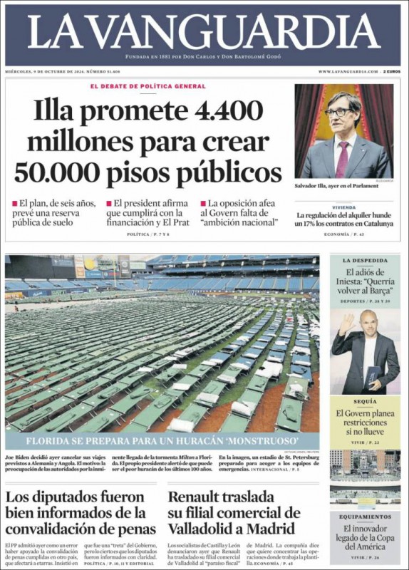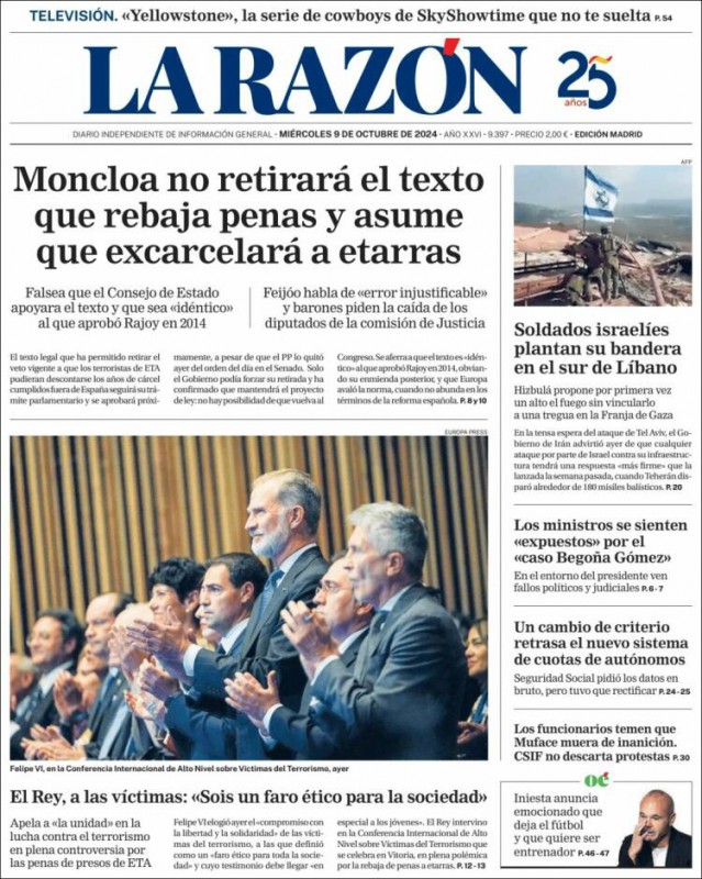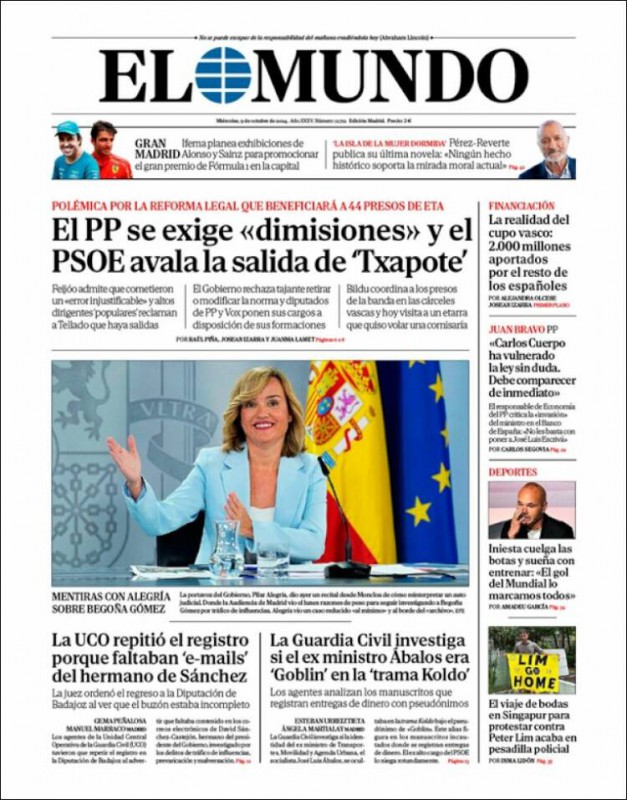Las portadas de los periódicos de este miércoles, 9 de octubre