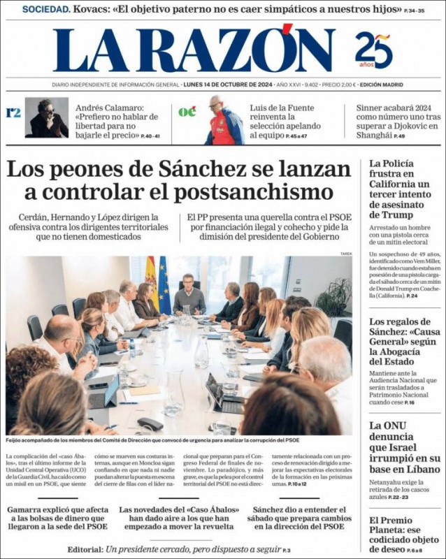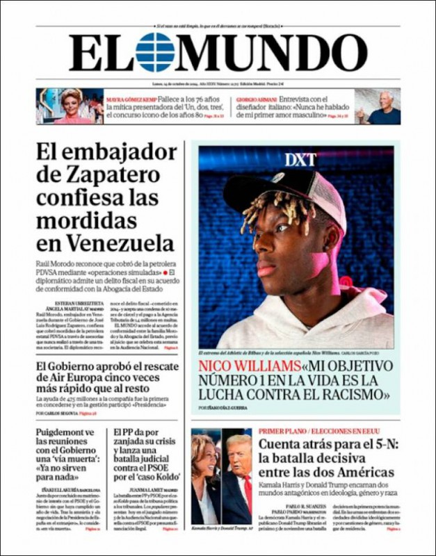 Las portadas de los periódicos de este lunes, 14 de octubre