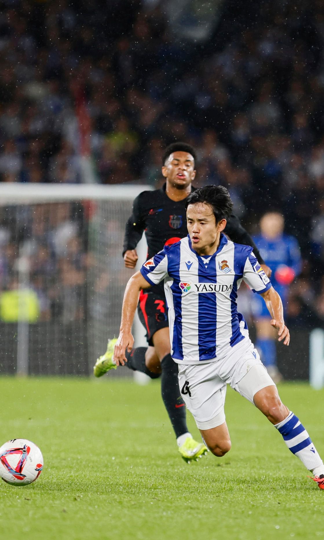 Los 'txuri urdin' crecieron a medida que Zubimendi escapaba de la vigilancia estrecha que ordenó el técnico 'blaugrana'. A su lado resplandeció Brais Méndez en la labor distributiva -en corto y con los cambios de juego hacia Becker-. Su claridad limpiando jugadas generó huecos para que Takefusa Kudo despertase. El nipón se puso a tono, sonrojo a Balde y creó una exhibición para el recuerdo. Partiendo desde la derecha, desbordó por el exterior y en diagonal, asociándose con frenesí. Asistió a Oyarzabal en el remate que éste estrelló en un compañero -minuto 19- y sentó a Balde para conectar un latigazo que estrenó los guantes de Iñaki Peña -minuto 31- . Era la apertura del telón previa a la aceleración local de verdad. Brais lanzó una falta en la frontal con peligro y el meta oponente lució reflejos antes de que la presión guipuzcoana ganase una pelota que Sucic peinó al espacio en la medular. Casadó perdió el cuerpeo con el croata, Cubarsí marró el despeje y se escapó Becker para ejecutar un derechazo ajustado e imparable. Premiando el esfuerzo impresionante de su escuadrón -minuto 33-.
