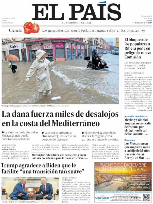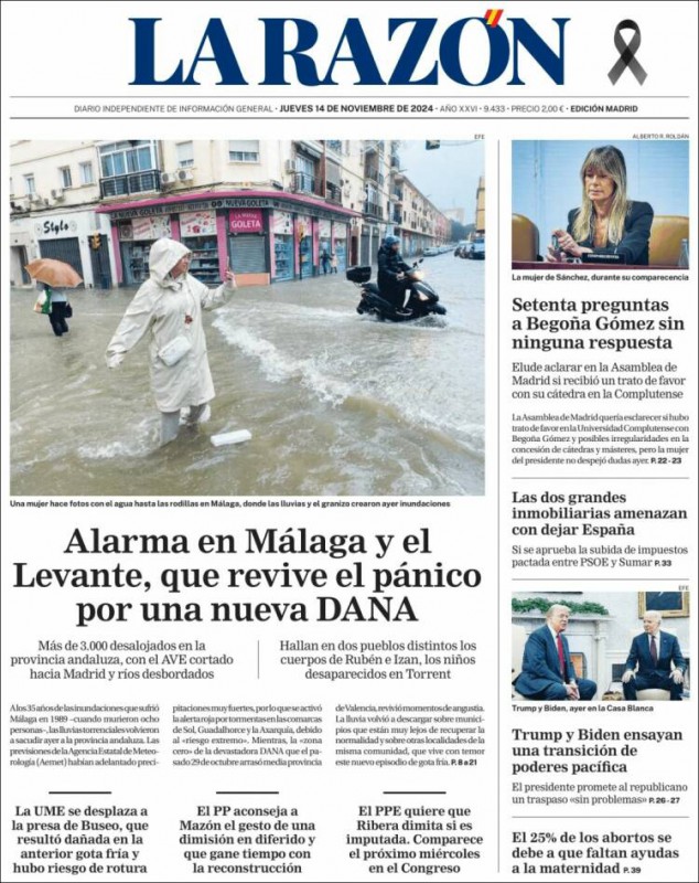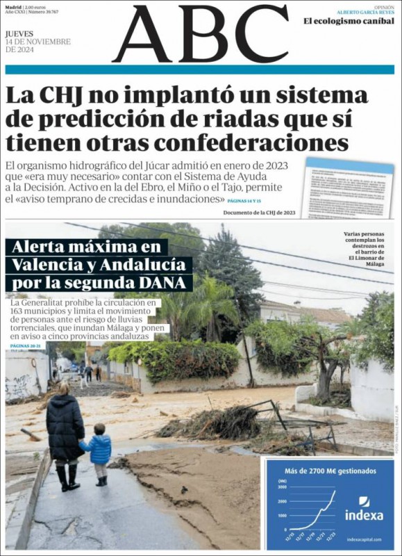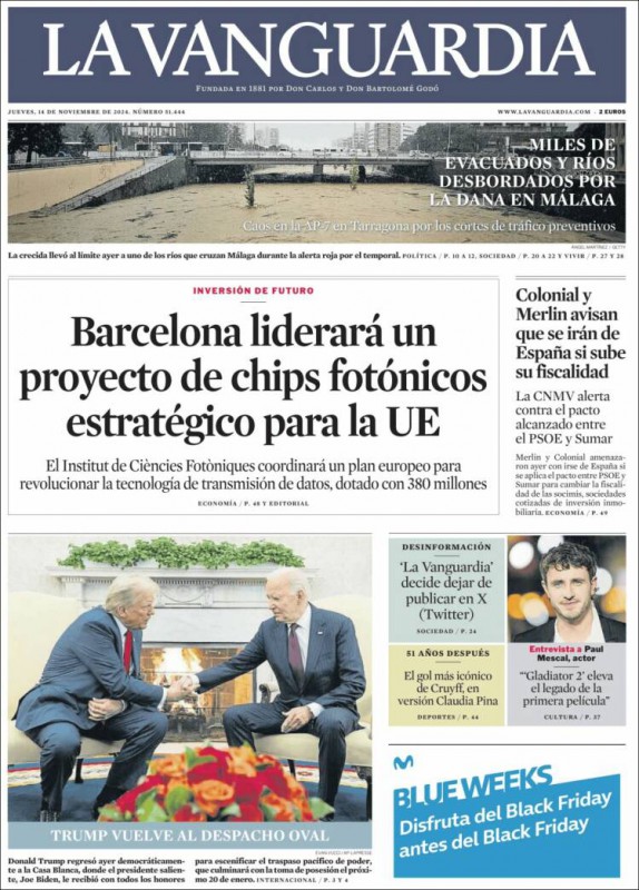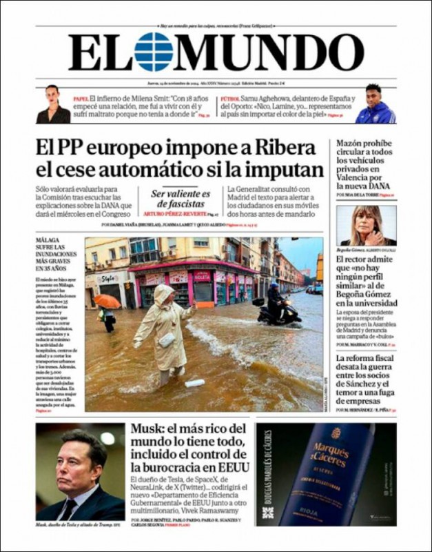 Las portadas de los periódicos de este jueves, 14 de noviembre