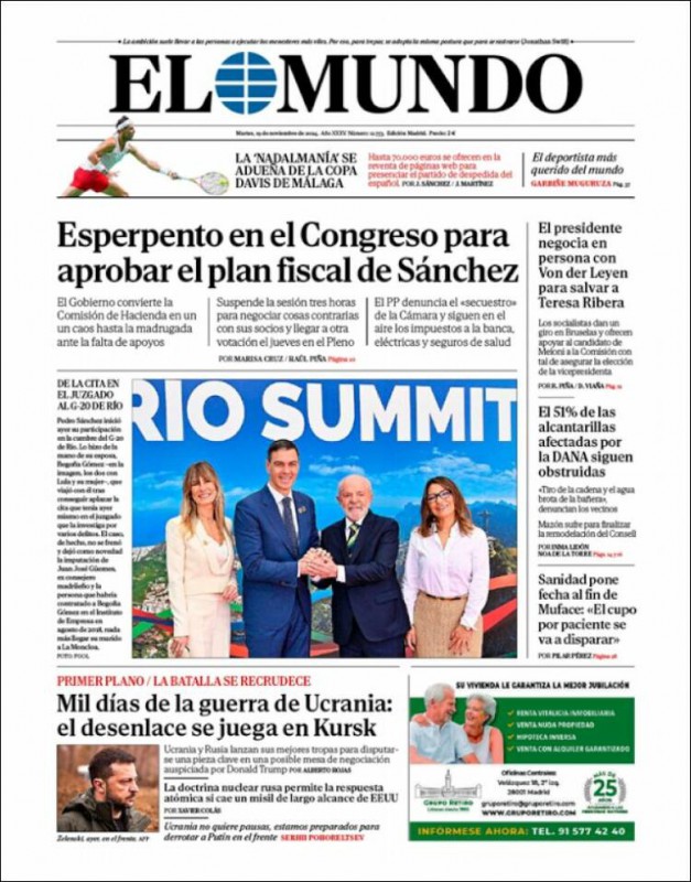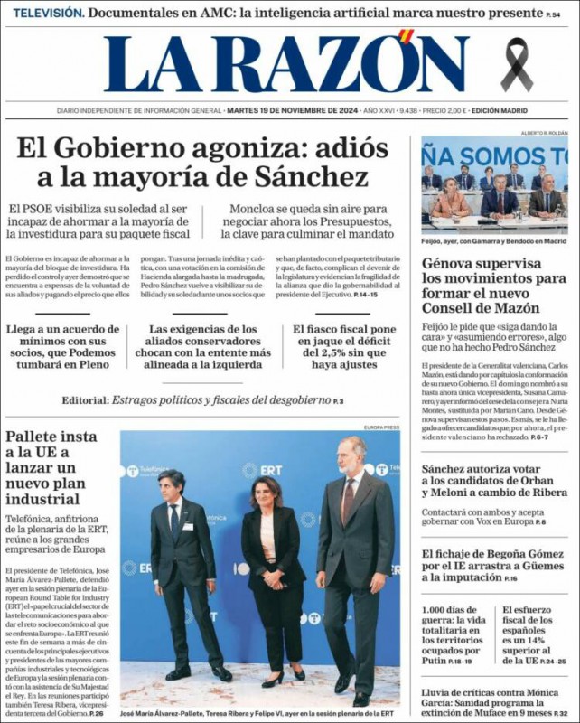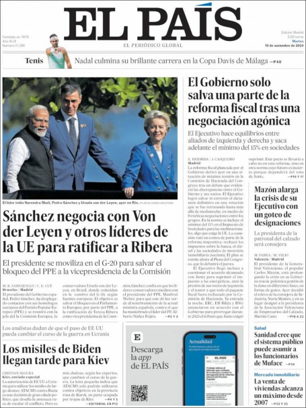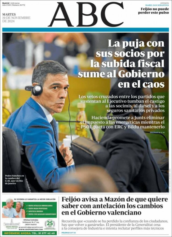 Las portadas de los periódicos de este martes, 19 de noviembre