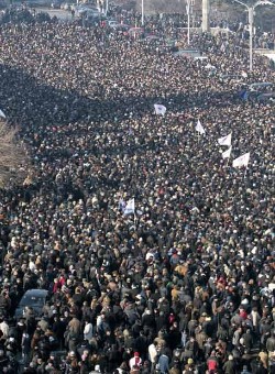Tras aquella guerra, en Georgia, donde desde la proclamación de la independencia en 1991 ningún presidente abandonó su cargo de acuerdo al procedimiento constitucional, de nuevo se habla de un cambio de poder revolucionario o, al menos, anticipado. De los líderes revolucionarios que hace cinco años eran aclamados por la multitud sólo queda en el poder Saakashvili, y otra multitud aprovecha este aniversario para reclamar en las calles su dimisión.