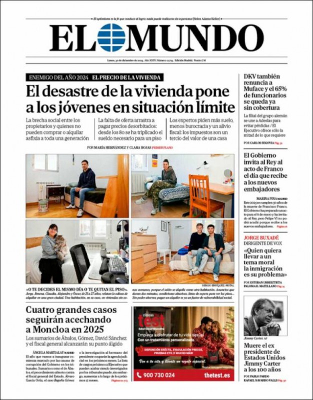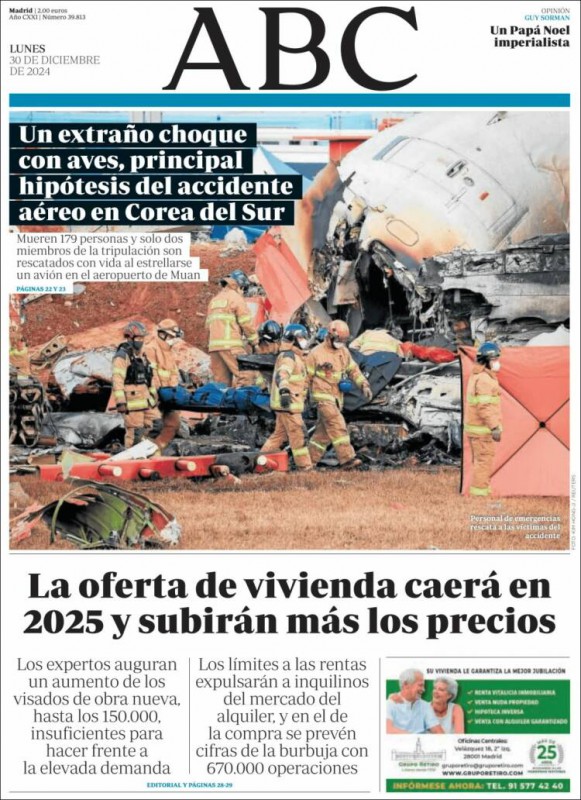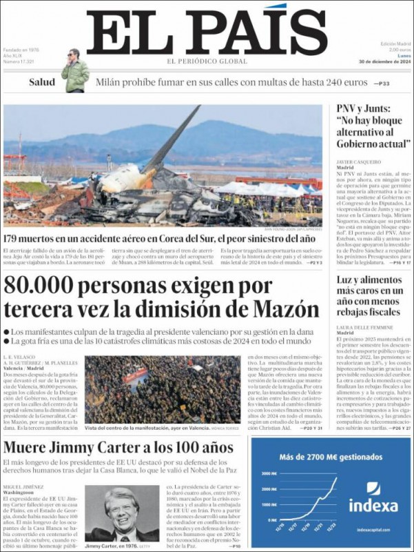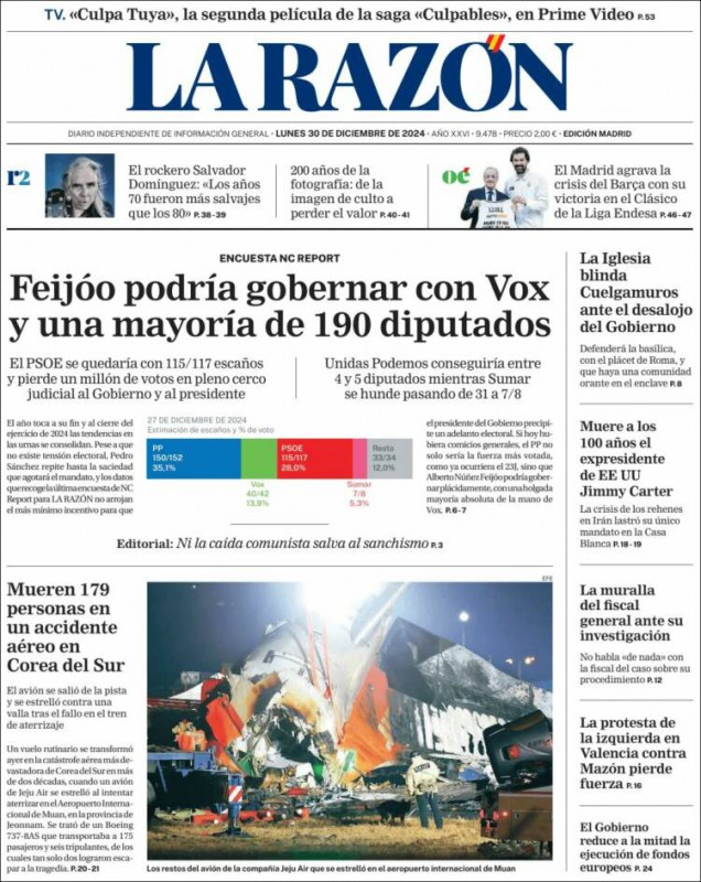 Las portadas de los periódicos de este lunes, 30 de diciembre
