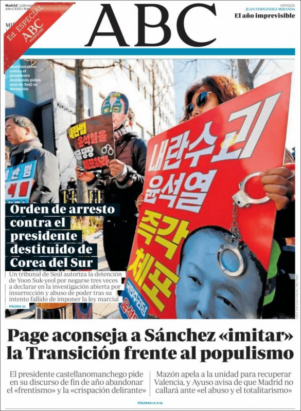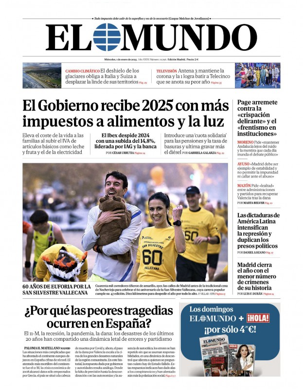 Las portadas de los periódicos de este miércoles, 1 de enero