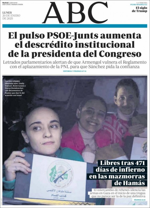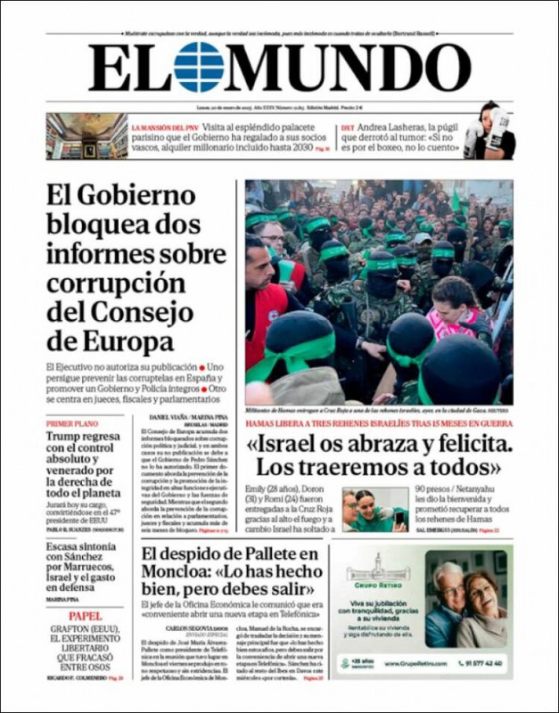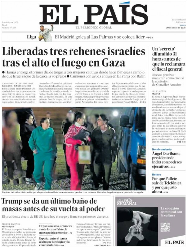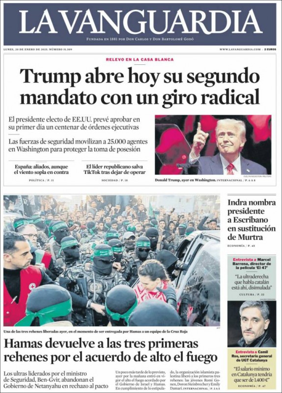 Las portadas de los periódicos de este lunes, 20 de enero