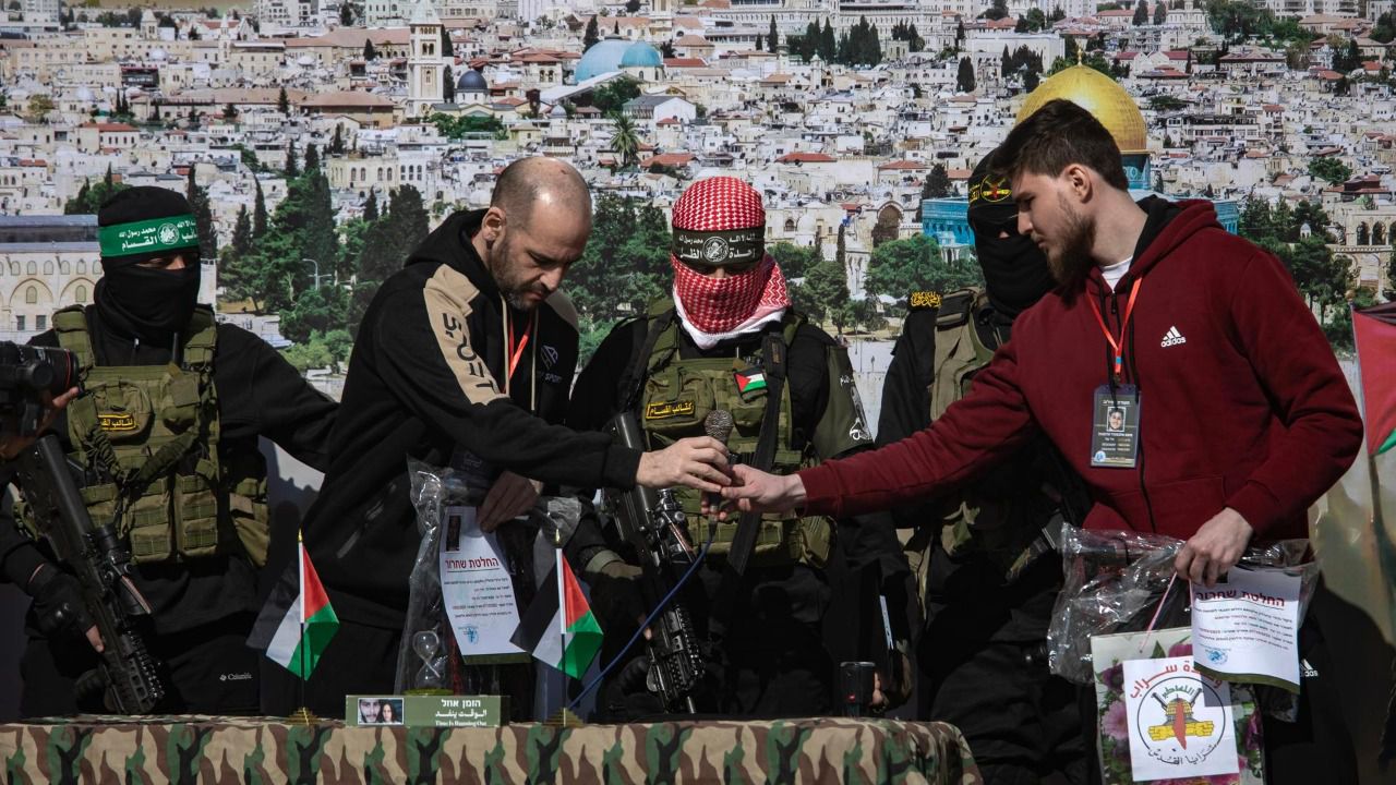 El grupo islamista levantó un escenario en la localidad de Jan Yunis, en el sur de la Franja de Gaza, para entregar a los rehenes a cambio de más de 369 presos palestinos en cárceles de Israel. Los primeros presos liberados llegaron a Ramala, en Cisjordania ocupada, donde fueron acogidos por decenas de palestinos y llevados a hombros.