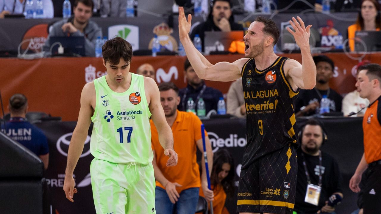 La igualdad era máxima y, lejos de bajar los brazos, La Laguna respondió al intento del Barça de escaparse en el marcador. Un triple sobre la bocina de Fernández frenó el amague azulgrana de marcharse en el marcador, dejando todo por decidir de cara al último período (65-65).
