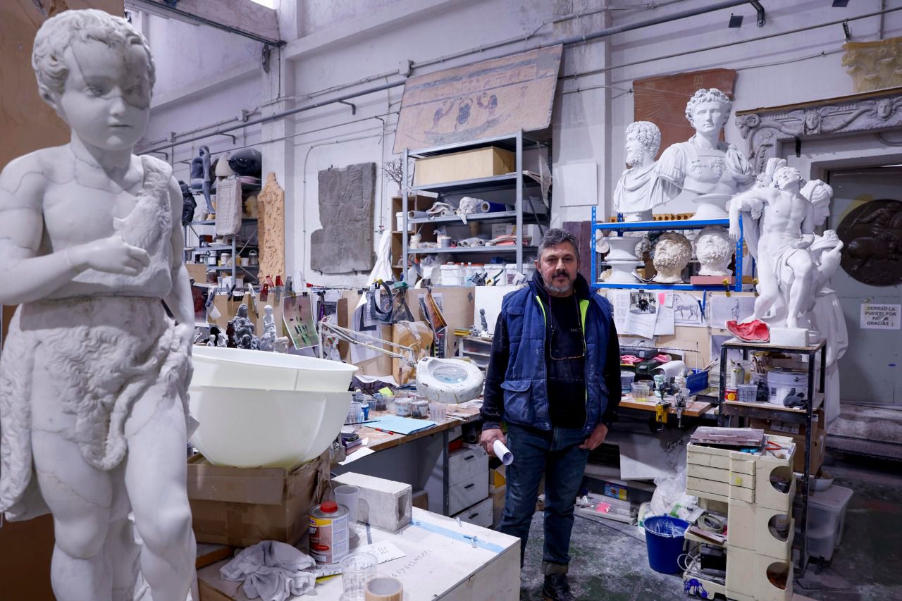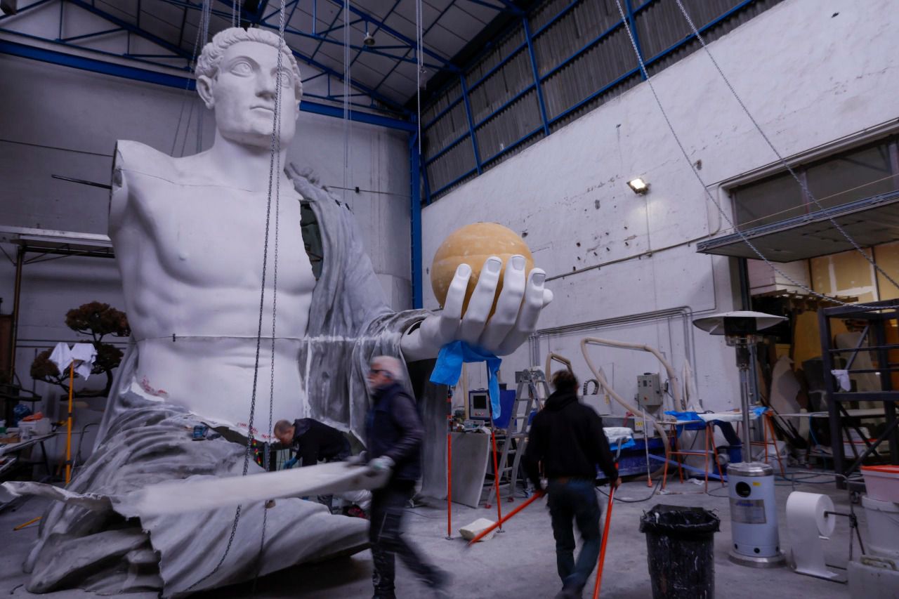 En su taller multidisciplinar de Madrid construyen piezas de todo tipo, como el monumental coloso del siglo IV del emperador Constantino de 13 metros de altura del que apenas se tenían en la actualidad 10 fragmentos conservados en los Museos Capitolinos de Roma.