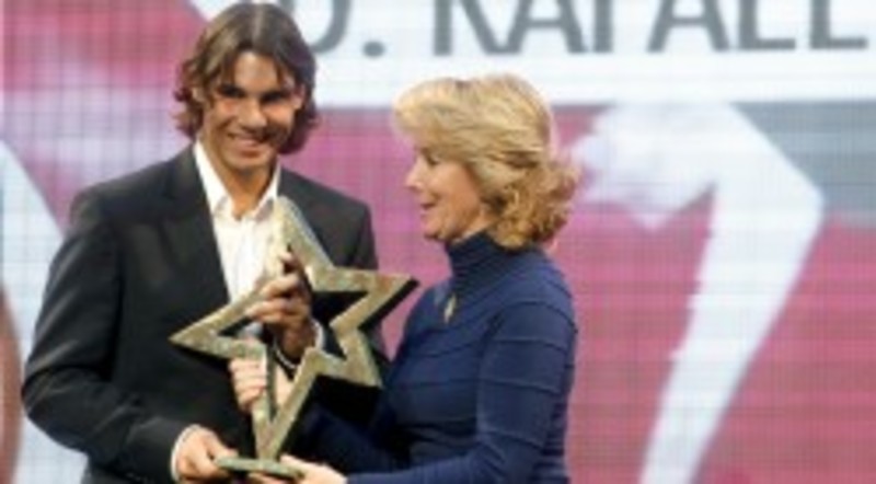 Nadal, de 22 años y con 34 títulos en su palmarés, entre ellos cuatro Roland Garros consecutivos y un Wimbledon, recibió de manos de la presidenta de la Comunidad de Madrid, Esperanza Aguirre, el trofeo que le permite estrenar los Premios.