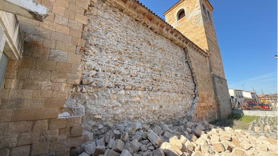 Se derrumba parte de un muro de la iglesia de San Andrés, joya del románico