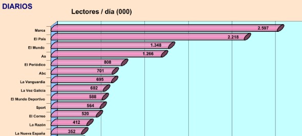 En relación a los lectores de diarios, descendieron en el primer semestre de 2008 un 1,27 por ciento, al pasar de 13,71 a 13,53 millones de personas, según datos del Estudio General de Medios (EGM) recogidos en el citado Libro Blanco.
