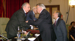 Juan José Alonso Millán ha sido presentado por la coordinadora del ciclo, Concepción García, y por el presidente del Casino de Madrid, Mariano Turiel de Castro, en un acto al que han asistido numerosas caras conocidas del mundo del teatro.