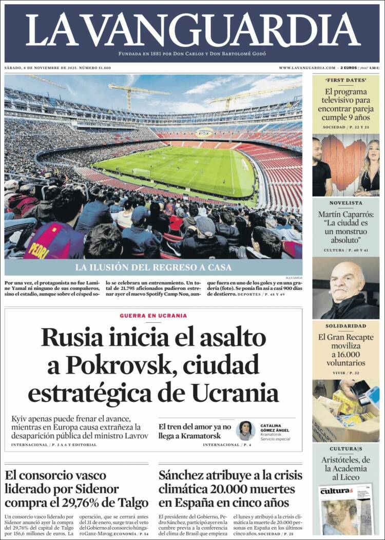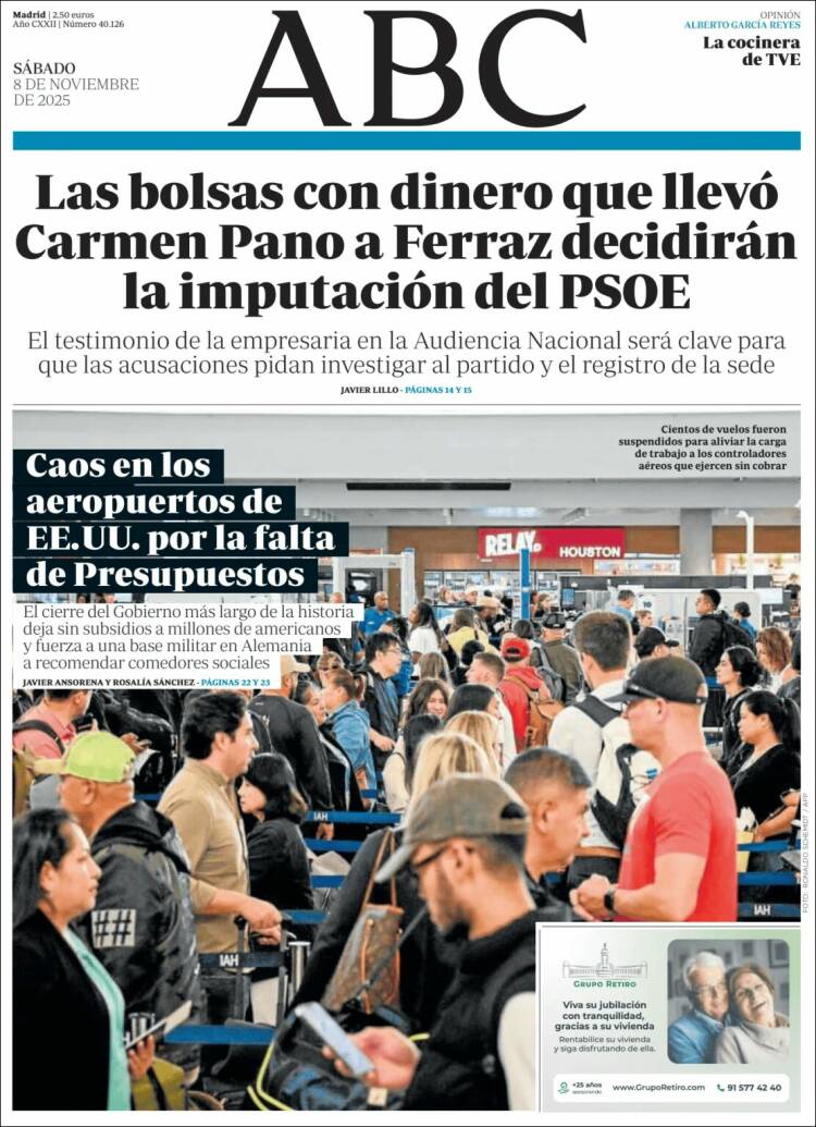 Las portadas de los periódicos de este sábado, 8 de noviembre