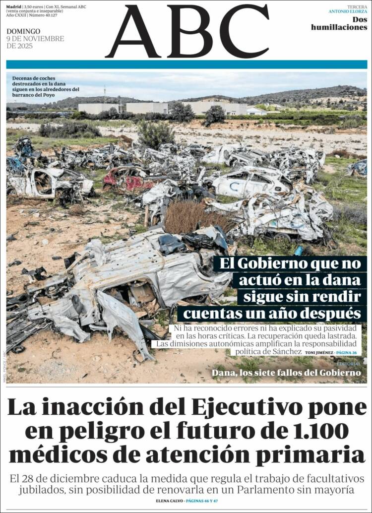 Las portadas de los periódicos de este domingo, 9 de noviembre