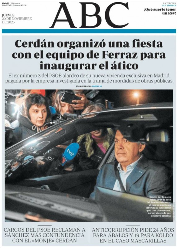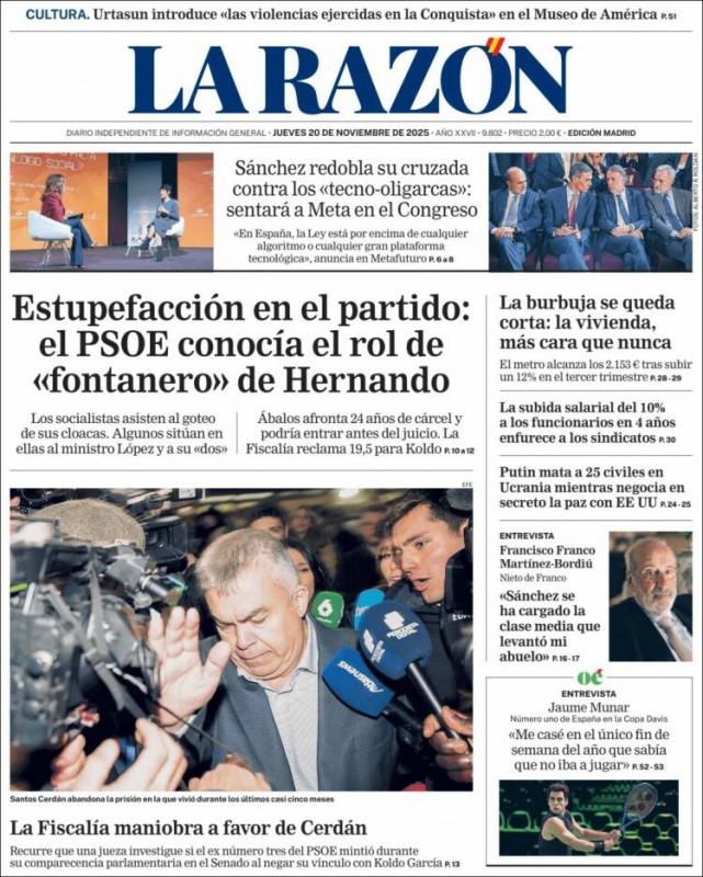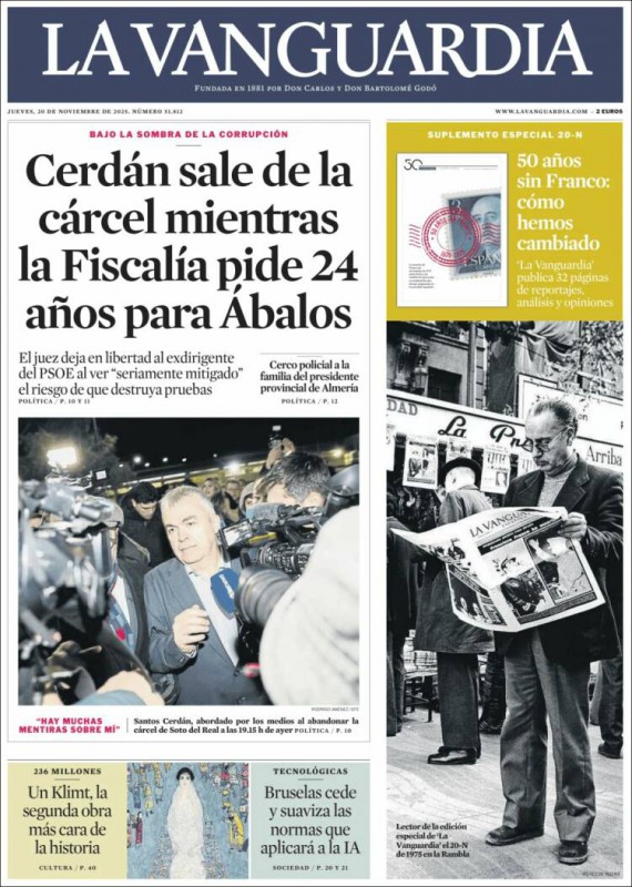 Las portadas de los periódicos de este jueves, 20 de noviembre