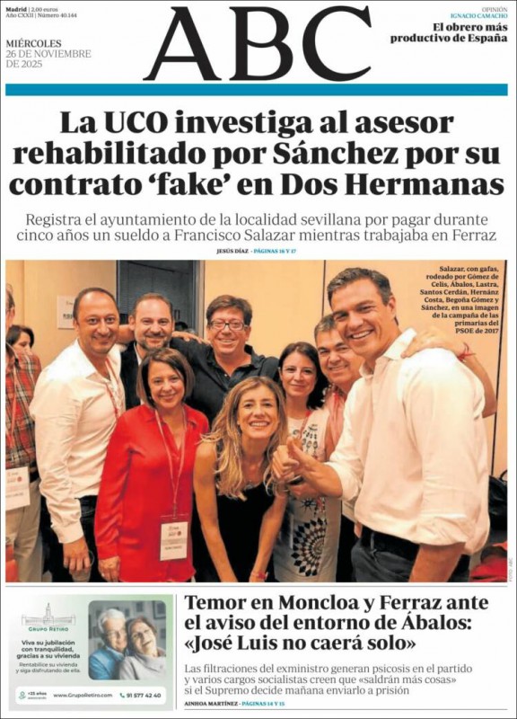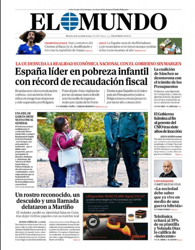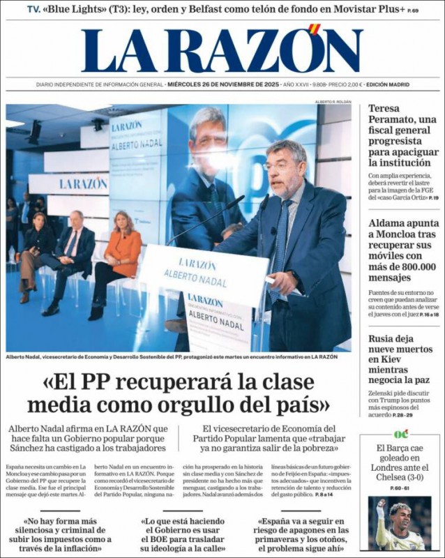 Las portadas de los periódicos de este miércoles, 26 de noviembre