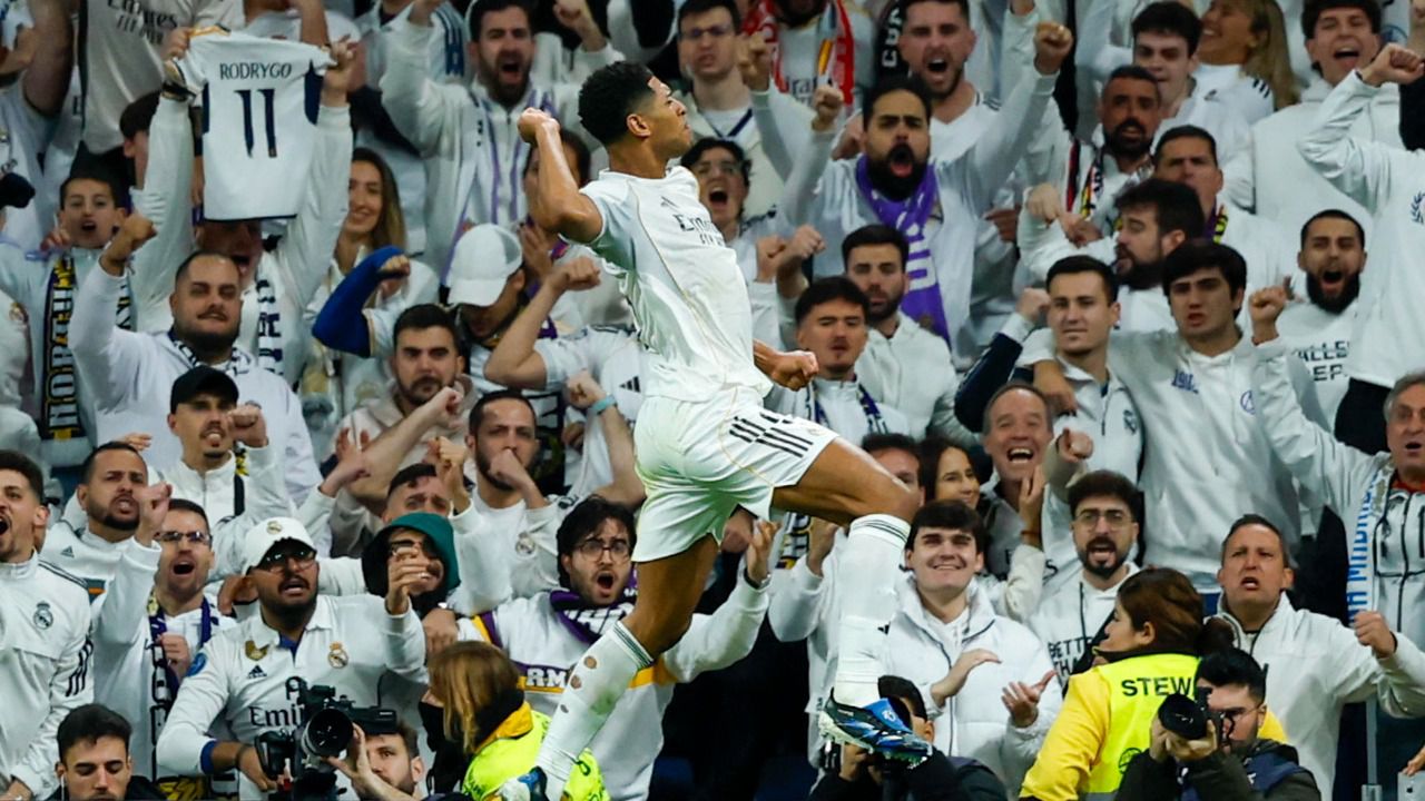 En el tramo final del primer tiempo, las dos escuadras tuvieron ocasiones: en el 37' Sow finalizó una llegada con un tiro muy cruzado y, dos minutos después, el poderío aéreo desatascó al Madrid gracias al gol de cabeza de Bellingham en el 39'.