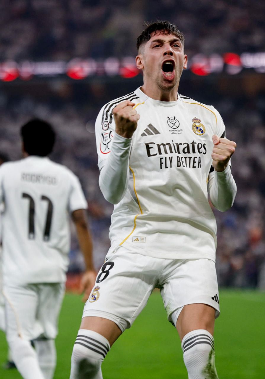 2- Real Madrid: Courtois; Carreras, Rüdiger (Fran García, min. 69), Asencio (Mendy, min. 69), Fede Valverde; Tchouaméni, Camavinga (Ceballos, min. 87), Bellingham, Rodrygo (Mastantuono, min. 87); Vinicius (Arda Güler, min. 80) y Gonzalo García.