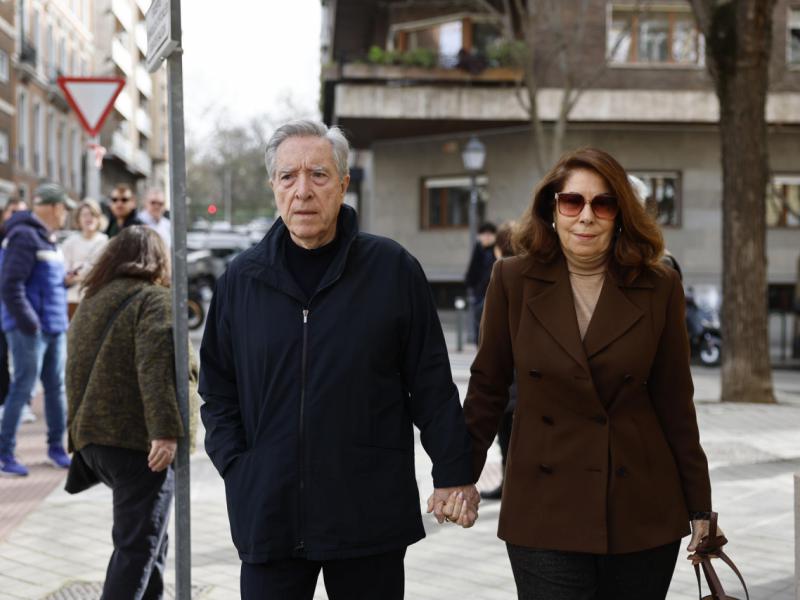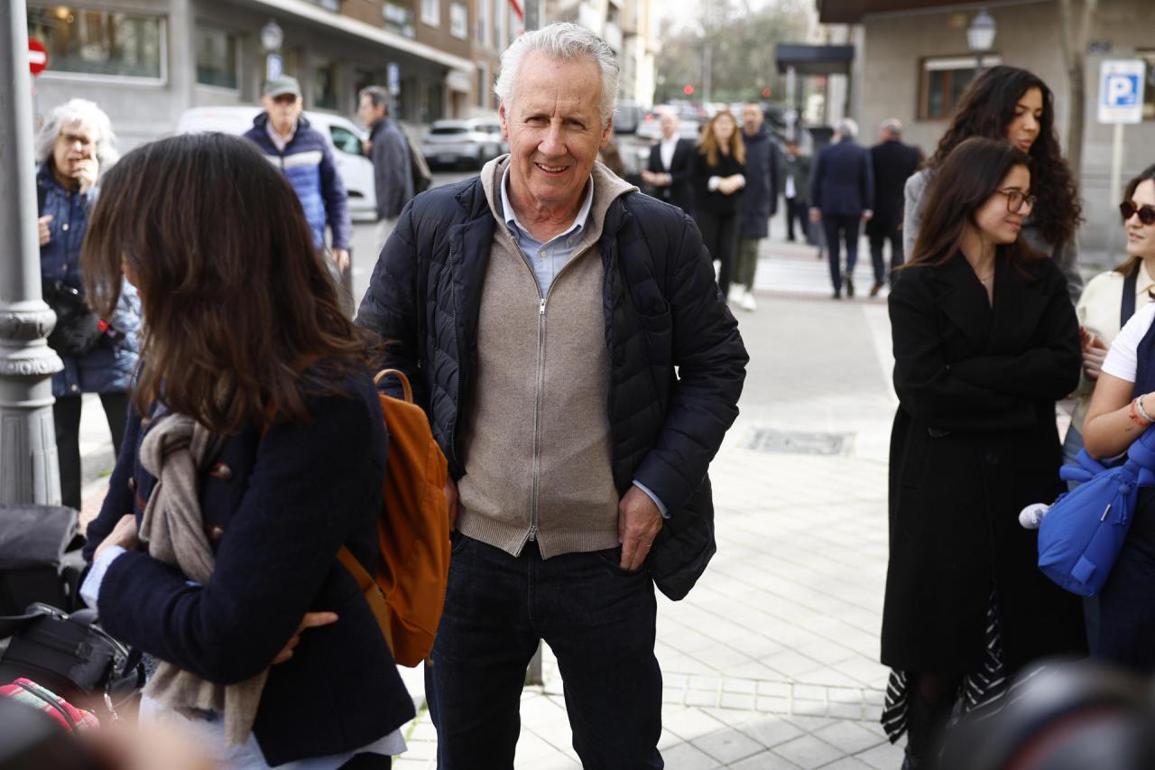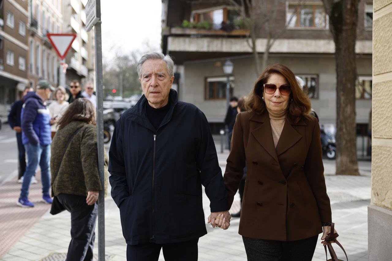 Su mujer, Ángela y sus hijas Cristina y Sonsoles Ónega han acudido a primera hora para recibir el féretro del periodista, fallecido este martes a los 78 años, y ante el que se están colocando decenas de coronas y ramos de flores.