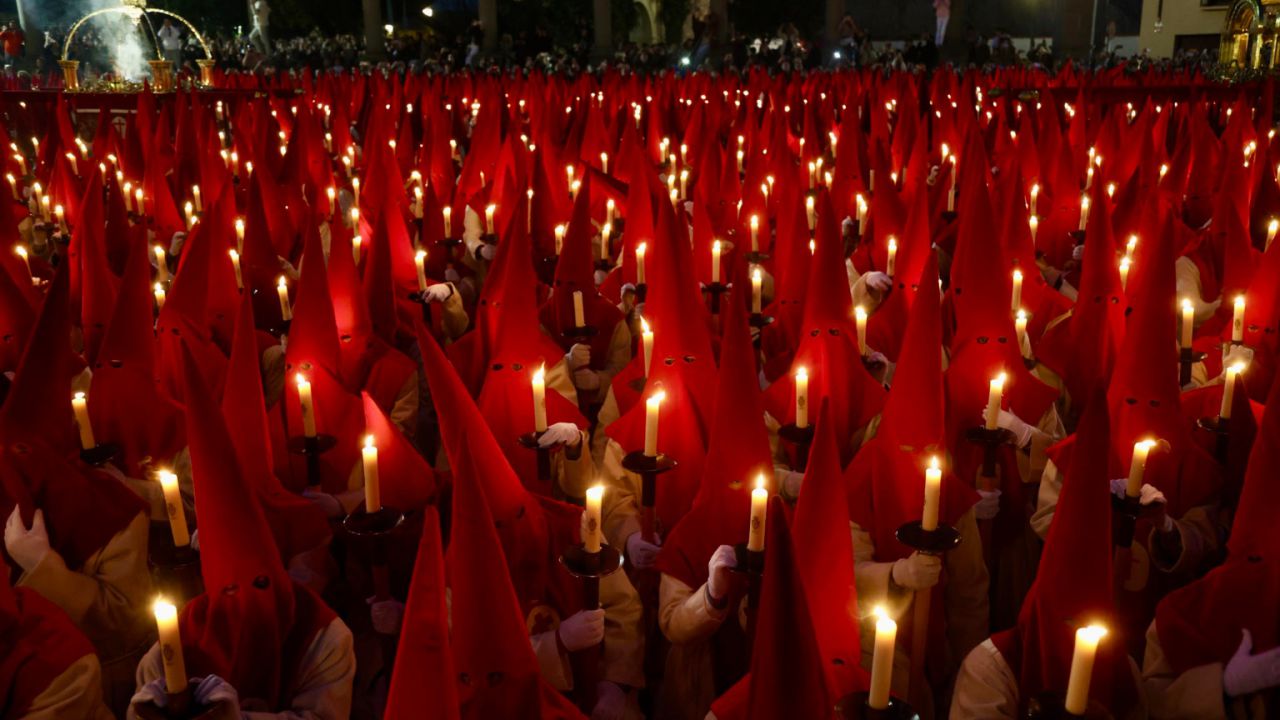La ciudad de Zamora, cuya Semana Santa está declarada de Interés Turístico Internacional y Bien de Interés Cultural, ha enmudecido este miércoles al anochecer, al jurar guardar silencio los más de dos mil cofrades de la Real Hermandad del Santísimo Cristo de las Injurias, postrados ante la imagen de este cristo en la plaza de la Catedral. Arrodillados en una plaza que han abarrotado, los cofrades de túnica de estameña blanca y caperuza roja han guardado silencio también ante el obispo, Fernando Valera, después de que el sonido lúgubre de una melodía de violonchelo y la plegaria de uno de los hermanos hayan dado comienzo al tradicional acto con el que da comienzo la procesión del Silencio de Zamora. En esta ocasión, en el desfile han participado testimonialmente como invitados por el centenario de su fundación integrantes de la Hermandad de Caballeros del Silencio de Nuestro Padre de Jesús Nazareno de Astorga (León), que han desfilado con su traje blanco con capa morada. Al respecto, el presidente de la cofradía del Silencio de Zamora, Rufo Martínez de Paz, ha explicado a EFE antes del desfile que esa presencia se debe a las efemérides y al hecho de que esa hermandad leonesa se inspiró en la de Zamora en su fundación, justo un año después. En la plegaria del juramento de silencio, el hermano de la cofradía Luis Felipe Delgado de Castro ha hecho alusión al regreso de los zamoranos en la diáspora cada Miércoles Santo para la procesión y se ha referido además al contexto internacional de conflictos bélicos y guerras. También ha hecho alusión a las mujeres que hasta hace unos años no habían podido desfilar en esta procesión y que defienden una "igualdad justa", y al olvido que en muchas ocasiones está sometida la provincia de Zamora y los pueblos condenados a la extinción. Tras esa reflexión, el obispo ha pedido a los cofrades que guarden silencio y si así lo hacían durante el desfile "que Dios, por su gran amor, os lo premie, y si no, por su infinita misericordia, os lo perdone".