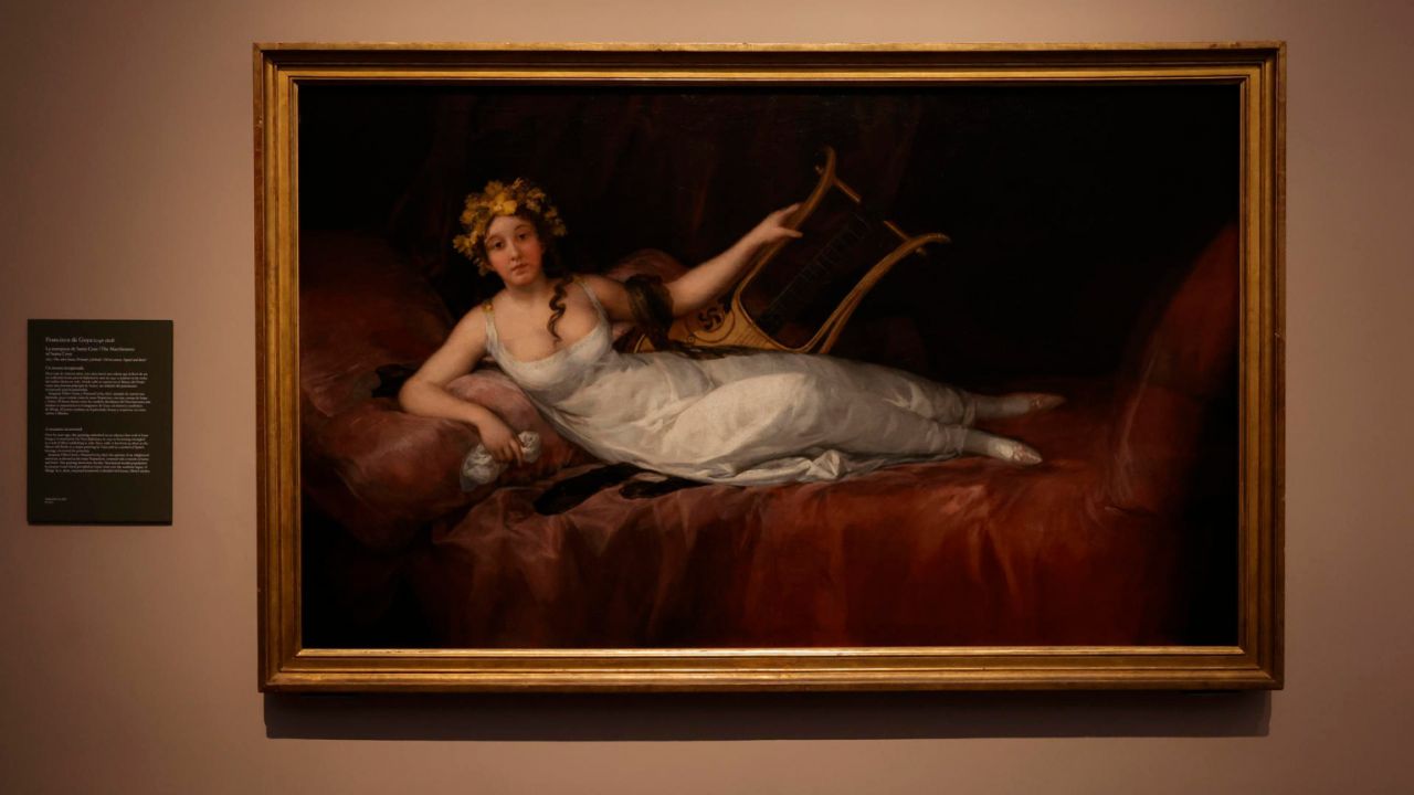 El cuadro muestra a Joaquina Téllez Girón, marquesa e ilustrada del siglo XVIII pintada por Goya en 1805, reclinada con una lira. Se expone junto a una de las tres copias que Franco encargó a otro pintor para compensar a los dueños y así poder regalarle el original a Hitler, algo que no llegó a ocurrir, con motivo del 40 aniversario del regreso del cuadro a España.