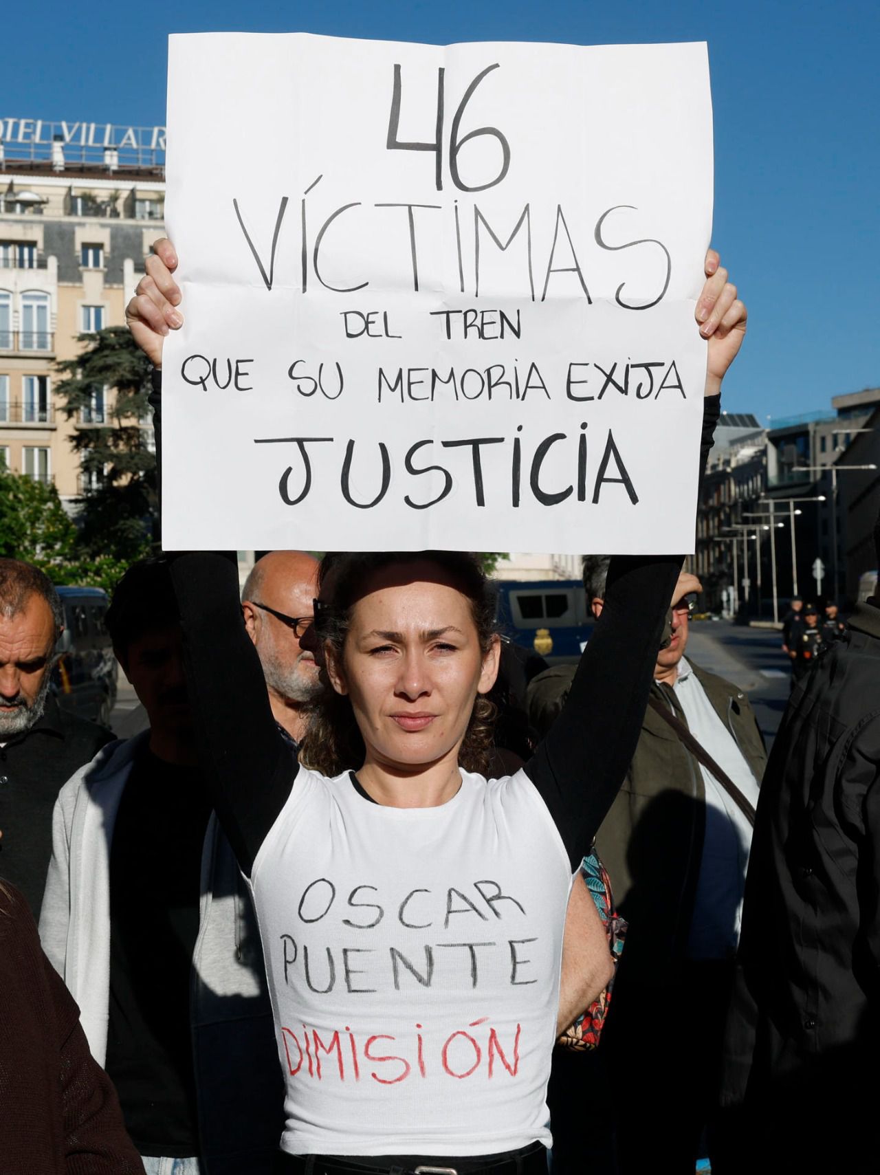 Convocadas por la Asociación Víctimas Descarrilamiento Adamuz, cerca de un centenar de personas han participado en la protesta -entre ellas también víctimas de otras tragedias ferroviarias como las de Angrois (Santiago) y Bejís (Castellón)-, en la que se han escuchado gritos y peticiones de dimisión contra el ministro de Transportes, Óscar Puente.