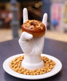 Para dar forma al bocado se utiliza una masa tipo buñuelo hecha con harina, miel y huevo, que envuelve el guiso antes de la fritura. El acabado se completa con una salsa elaborada con el jugo del propio guiso, enriquecida con mantequilla y cacao, y se remata con ralladura de lima y almendras. En conjunto, es una tapa que reinterpreta los callos a la madrileña en un formato original de donut salado frito, combinando la intensidad del guiso tradicional con matices dulces, cítricos y tostados.