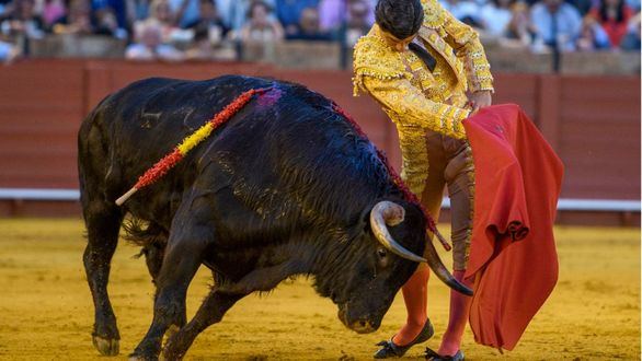 El sevillano estuvo templado y por encima de su condición en un trasteo ya largo de por sí, intentando apurar lo poco que el de Hernández le ofrecía, hasta que, cuando ya parecía tocar a su fin, atacado más en corto el toro se le arrancó de improviso y le colgó de sus pitones por unos instantes, afortunadamente sin llegar a herirle.