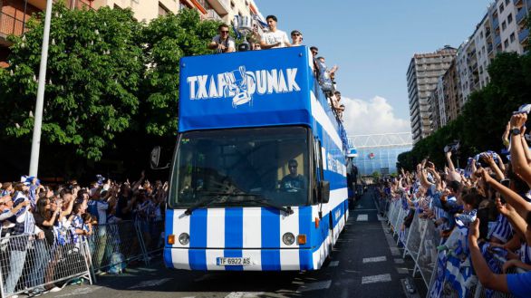 Una situación anímica en la que la afición donostiarra entró el sábado con la victoria ante el Atlético de Madrid y que ha alcanzado el éxtasis este lunes con el recibimiento al equipo en los jardines de Alderdi Eder.