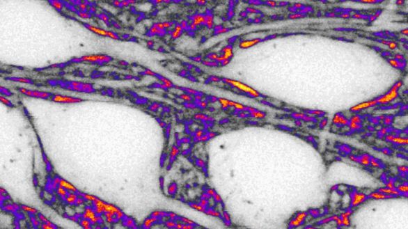 Neuronas en blanco y espacio extracelular en color. (Foto: Jan Tonnesen)