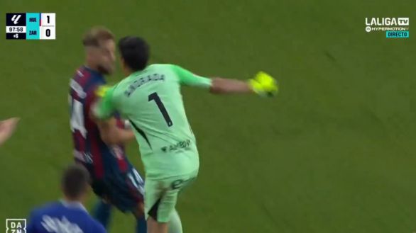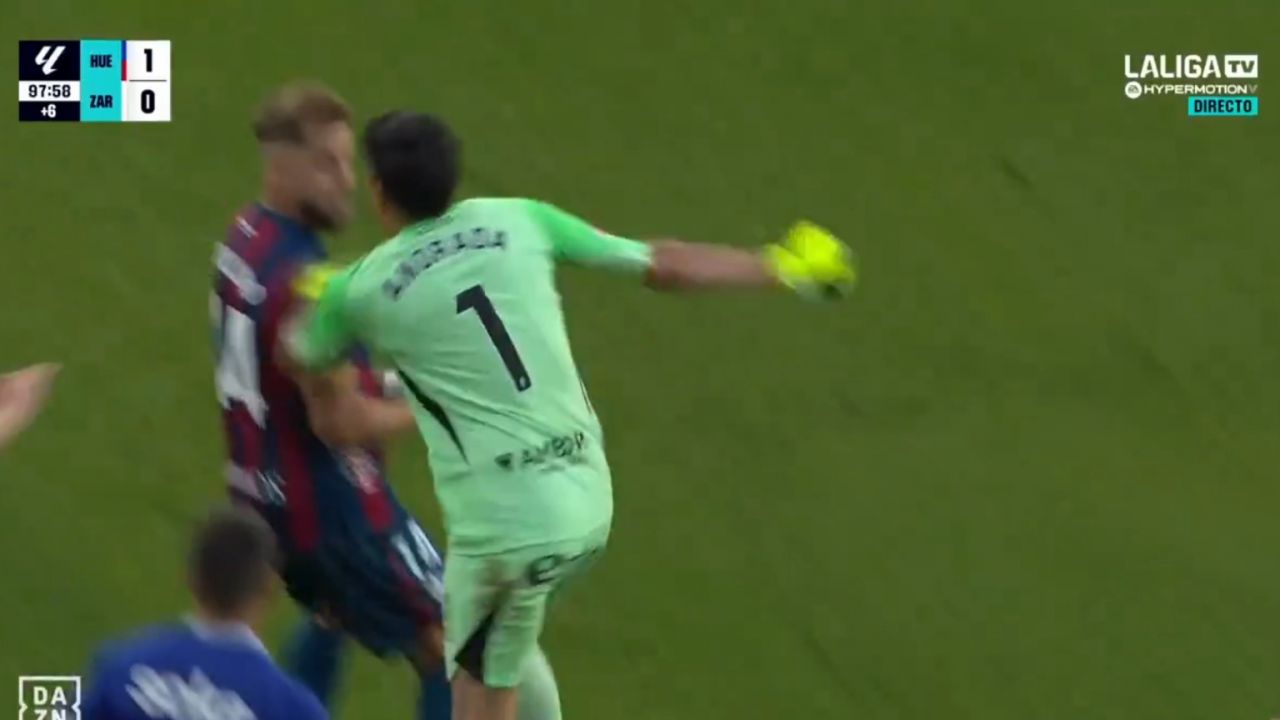 El argentino Esteban Andrada, ex de Boca Juniors y portero del Zaragoza, dio este domingo un puñetazo en el rostro al capitán del Huesca Jorge Pulido nada más ser expulsado en el tiempo añadido del partido entre ambos equipos en la jornada 37 de LaLiga Hypermotion. Con 1-0 en el marcador y en el minuto 98, Andrada fue expulsado por empujar a Pulido. Nada más ver la tarjeta roja el argentino perdió el control y busco al capitán del Huesca para propinarle un puñetazo en la cara.
