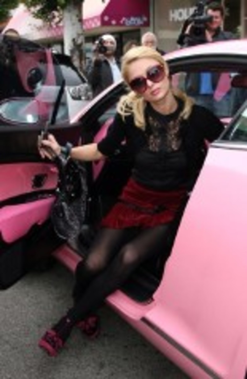 Esta Barbie viviente está, como la creación de Mattel, obsesionada con el rosa. De modo que, ¿por qué no llevarlo a su medio de transporte favorito, un Bentley Continental GT? El coche, que habitualmente tiene un aspecto completamente distinto, ha sido adaptado, tuneado, “customizado” como se dice ahora, para los gustos de Paris.