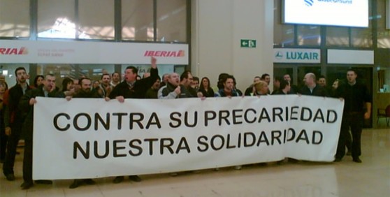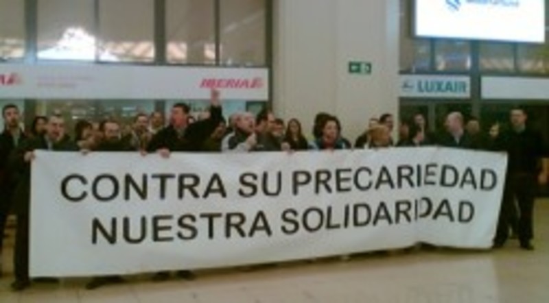Dentro de los actos realizados durante la huelga, se celebró una Concentración desde las 11.00 horas hasta las 12.00 horas en el hall de salidas del aeropuerto con una importante presencia de trabajadores, que corearon lemas como "Iberia contratos de miseria" y "Basta ya de Precariedad"